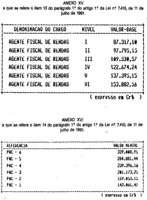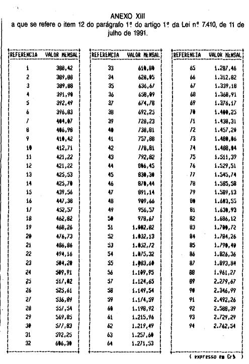 § 1.º - Os valores decorrentes do reajuste de que trata o "caput" deste artigo são os constantes dos Anexos I a XVIII, na seguinte conformidade: