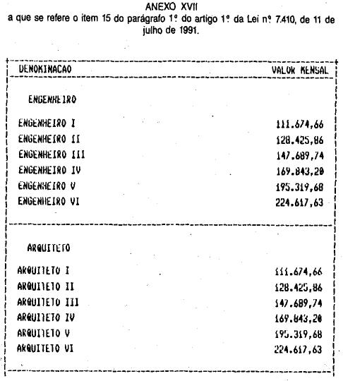 15 - Anexo XVII - correspondente aos integrantes das séries de classes de Engenheiro, Arquiteto, Engenheiro Agrônomo e Assistente Agropecuário de que trata o § 1.º do Artigo 1.º da Lei Complementar n. 540, de 27 de maio de 1988;
