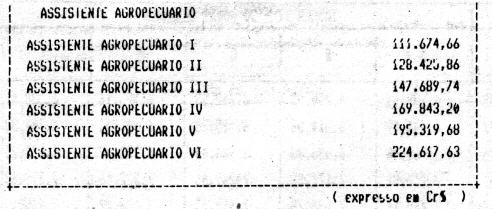 a) Cr$ 3.426,56 (três mil, quatrocentos e vinte e seis cruzeiros e cinqüenta e seis centavos), quando em jornada de 40 (quarenta) horas semanais de trabalho;