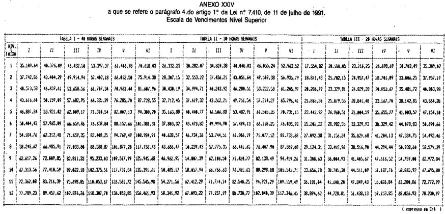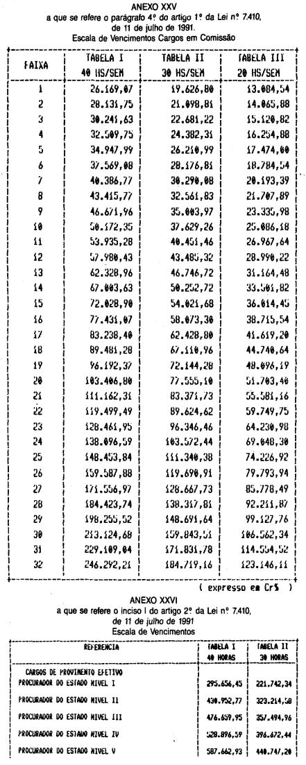 § 4.º - Os valores das Escalas de Vencimentos Nível Superior e Cargos em Comissão, instituídas pelo Artigo 6.º da Lei Complementar n. 556, de 15 de julho de 1988, são, em decorrência do disposto no "caput", os fixados nos Anexos XXIV e XXV.