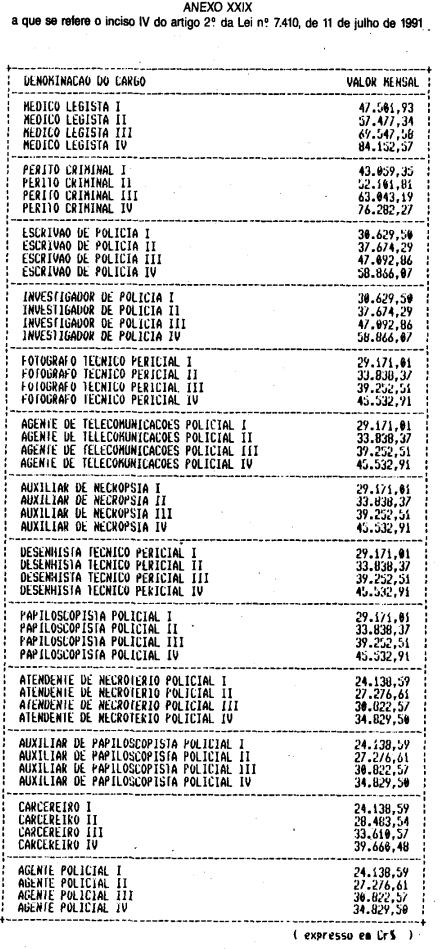 IV - Anexo XXIX - correspondente aos integrantes das carreiras policiais civis, de que trata o § 1.º do Artigo 1.º da Lei Complementar n. 547, de 24 de junho de 1988;