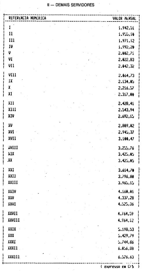 II - para os servidores enquadrados nas referências numéricas de I a XXXIII.