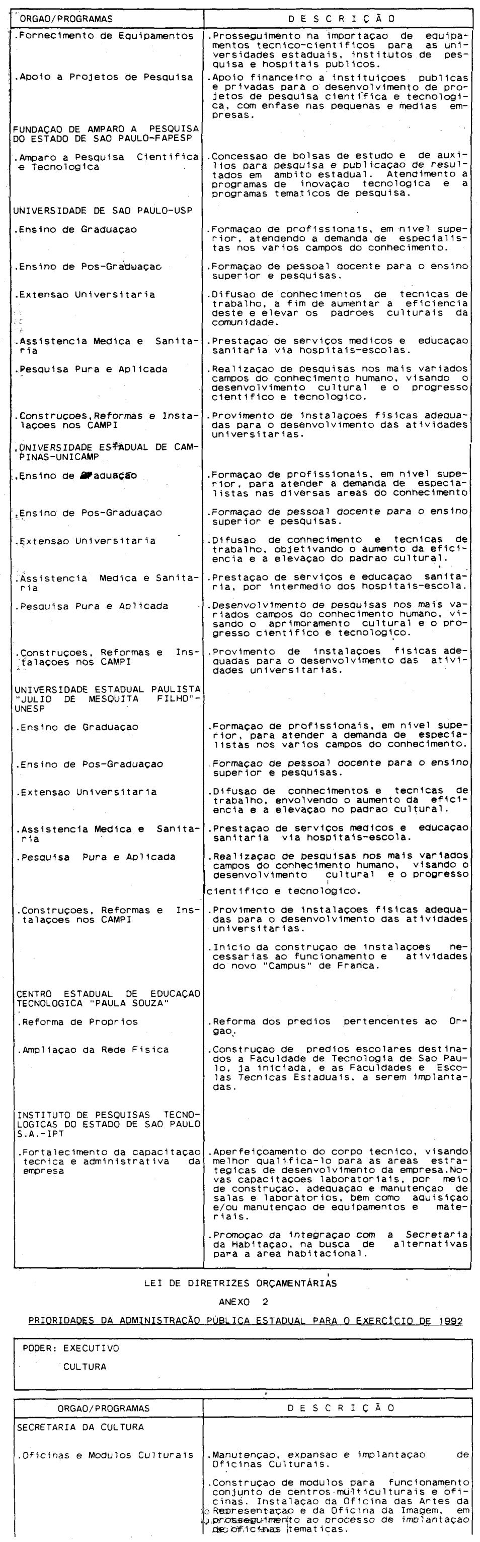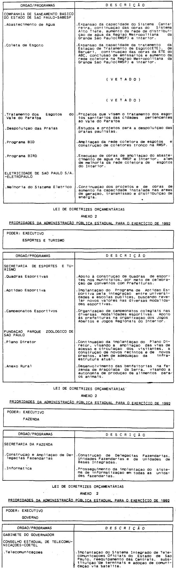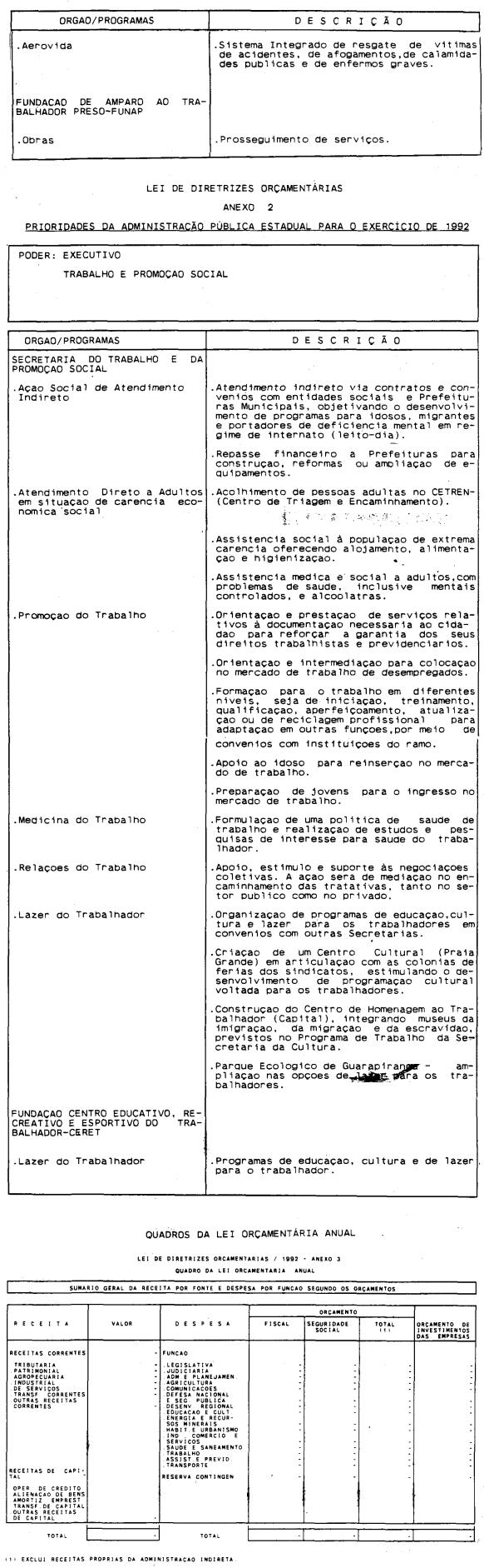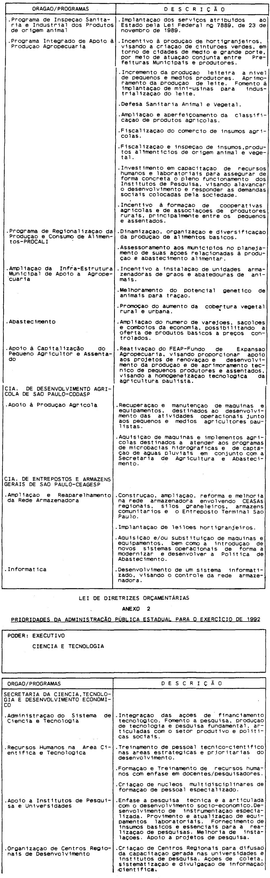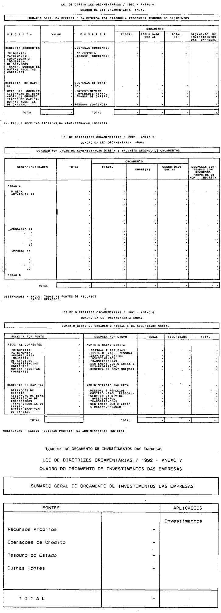 Artigo 4º - A proposta orçamentária do Estado para 1992 conterá: