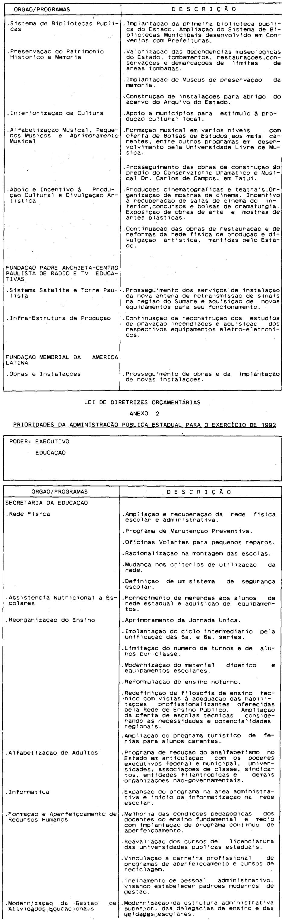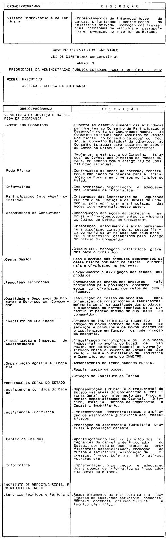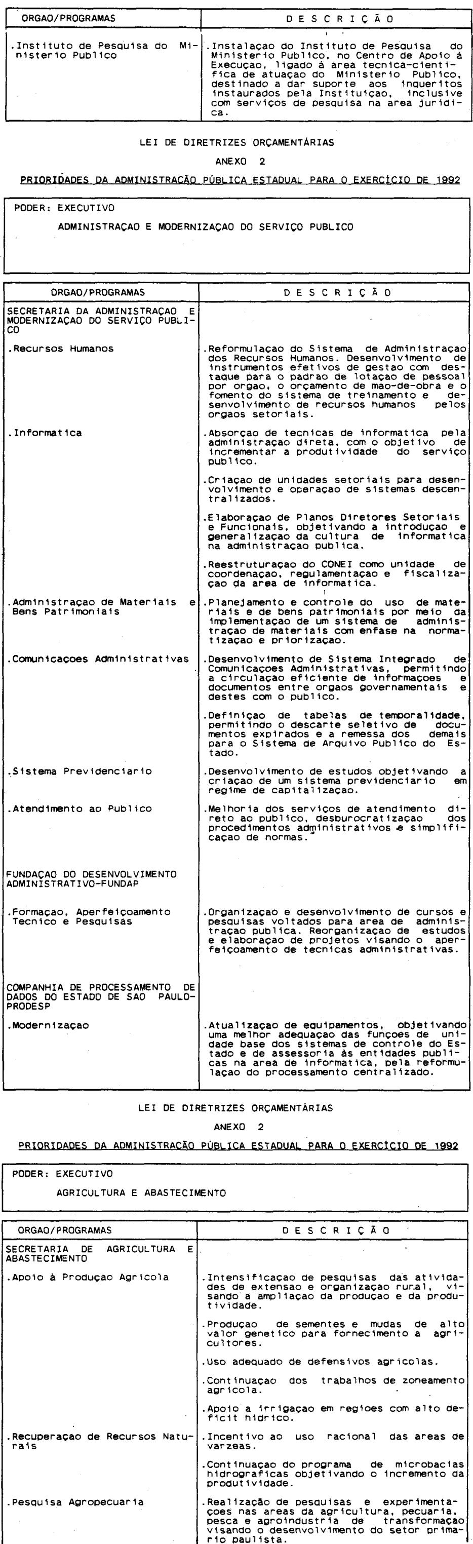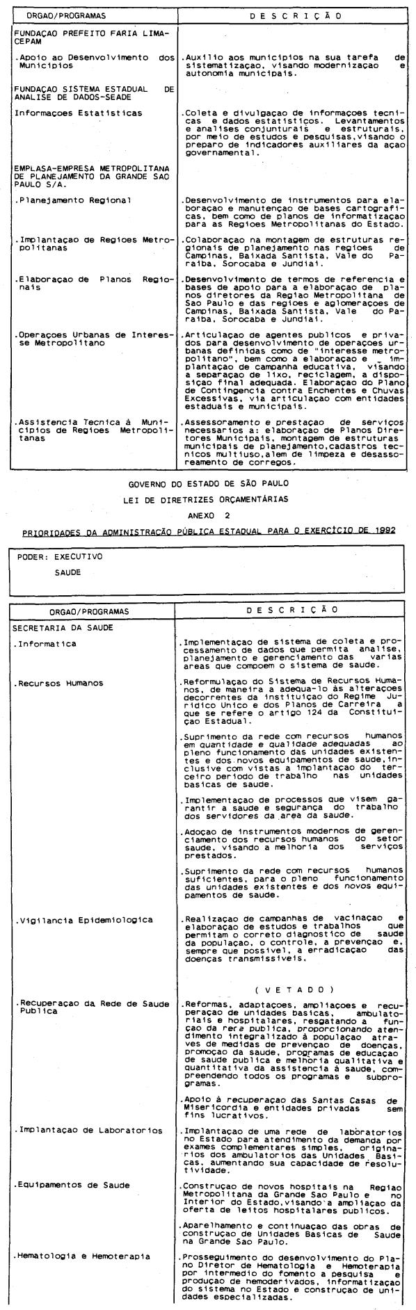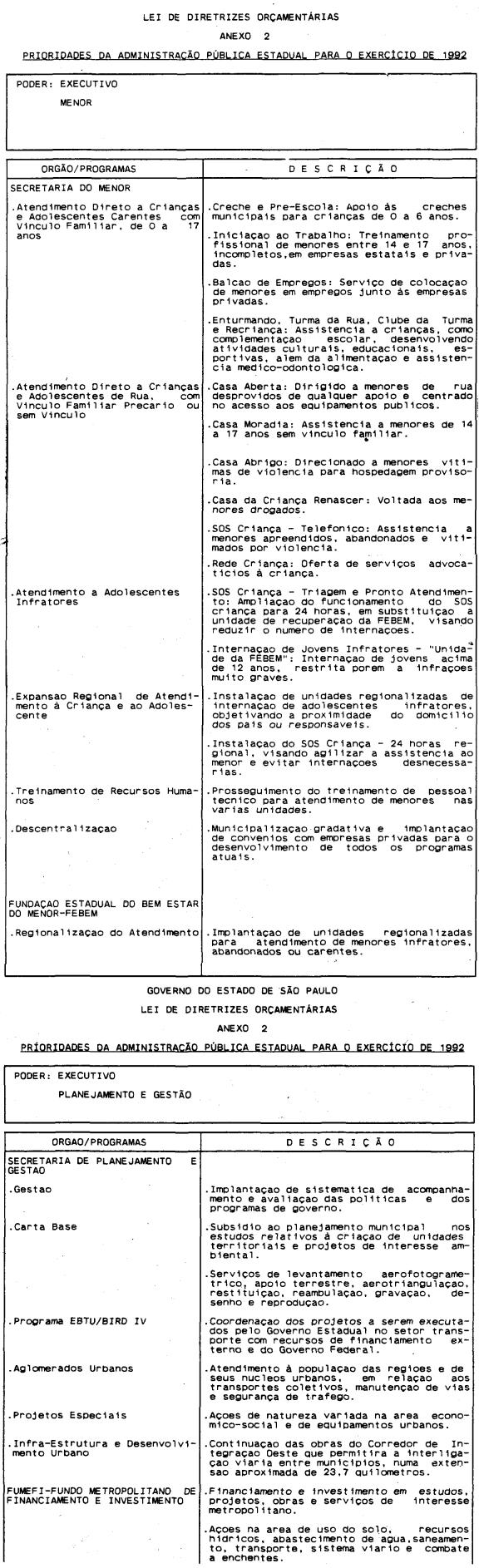Artigo 4º - A proposta orçamentária do Estado para 1992 conterá: