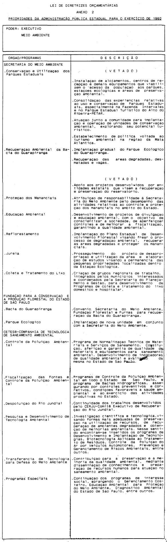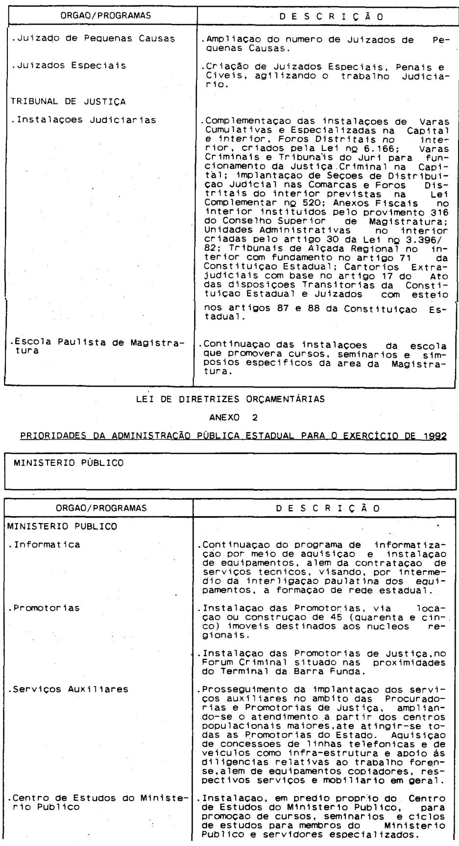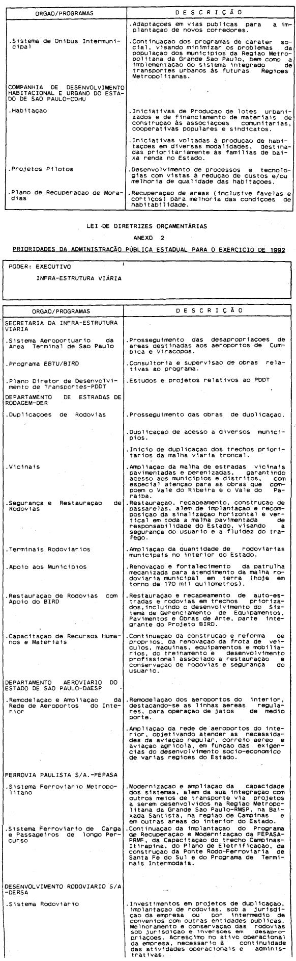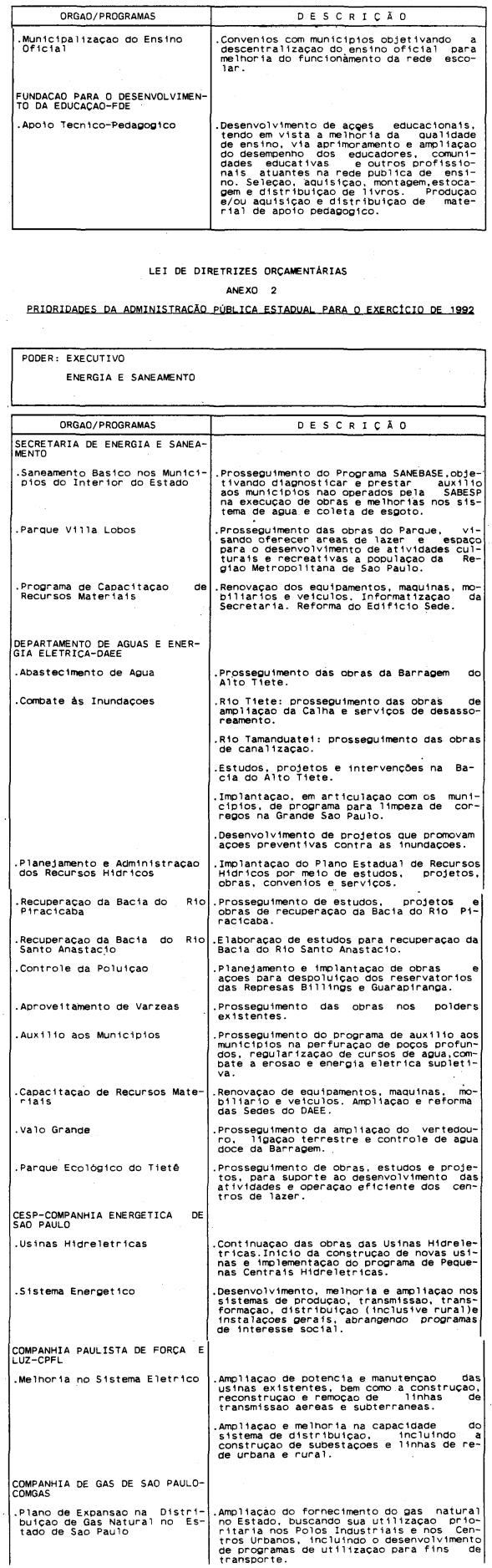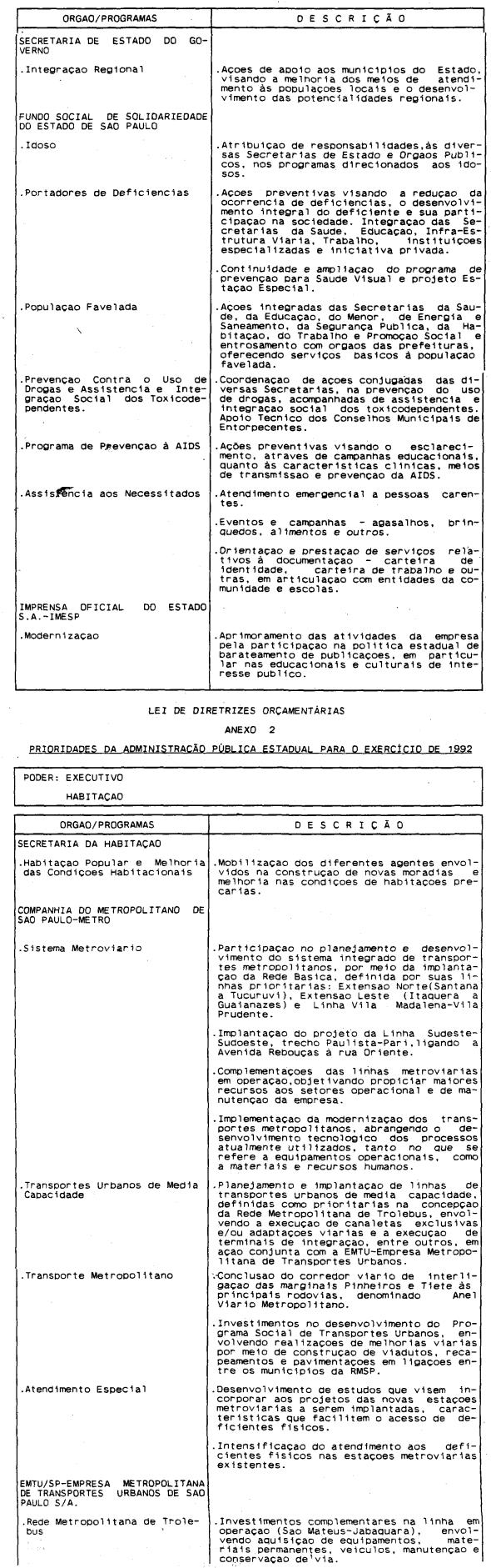 Artigo 4º - A proposta orçamentária do Estado para 1992 conterá: