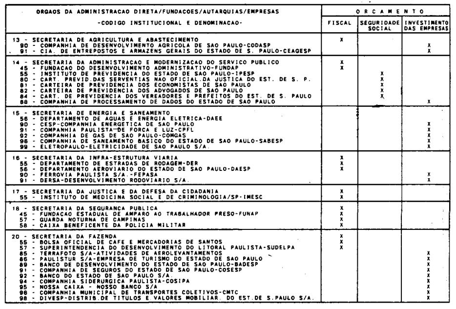 V - demonstrativo das despesas por órgão ou entidade da administração direta e indireta, conforme conteúdo das tabelas explicativas, a nível de órgão.