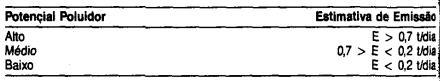 c) através do somatório das emissões de cada fonte, determinada conforme o item "a", determina-se Estimativa de Emissão (E) para entrada na Tabela anterior.