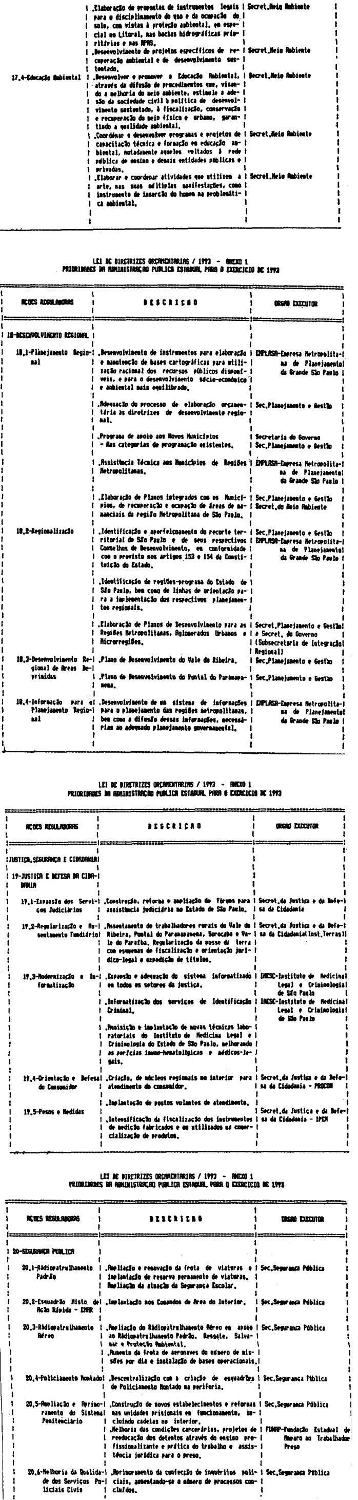 Artigo 3º - A proposta orçamentária do Estado para 1993 observará as prioridades para a administração pública referidas no Anexo 1 a esta lei.