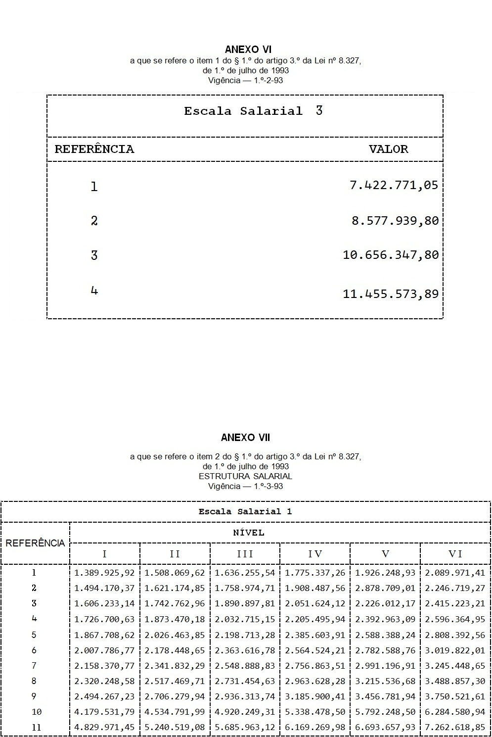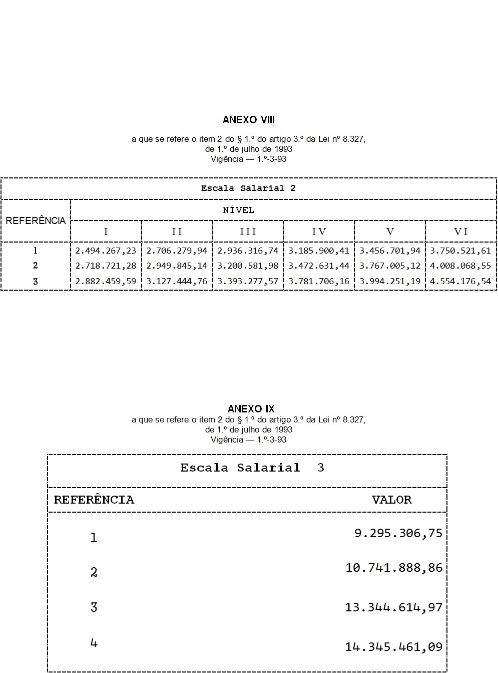 2 — a partir de 1.º de março de 1993, Anexos VII, VIII e IX, relativos às Escalas Salariais 1, 2 e 3, respectivamente;