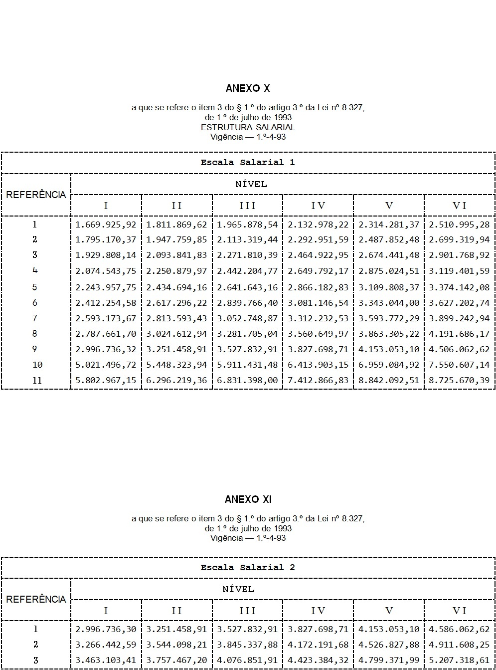 3 — a partir de 1.º de abril de 1993, Anexos X, XI e XII, relativos às Escalas Salariais 1, 2 e 3, respectivamente.
