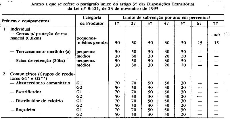 IV - definir as obrigações a que deverão se sujeitar os produtores rurais para o recebimento das subvenções econômicas e de sementes, visando a assegurar a continuidade da adoção de práticas conservacionistas, bem como o uso normal dos abastecedouros e dos equipamentos, de forma a atender ao interesse comunitário. Palácio dos Bandeirantes, 23 de novembro de 1993.
