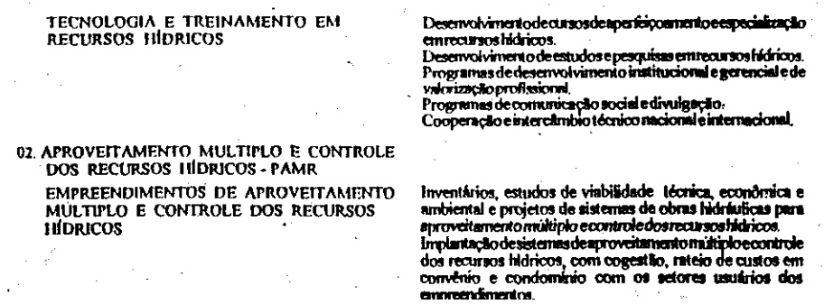 a) implantação de projetos integrados de aproveitamento, controle, proteção e recuperação dos recursos hídricos;