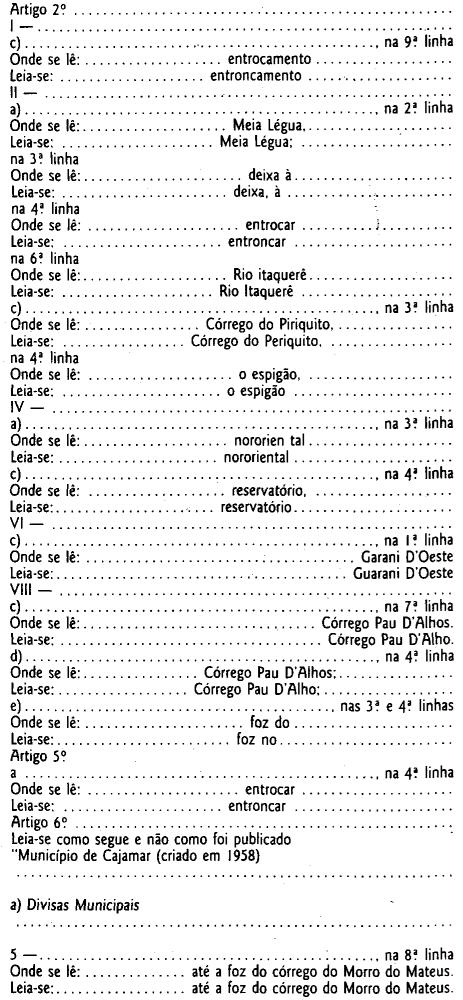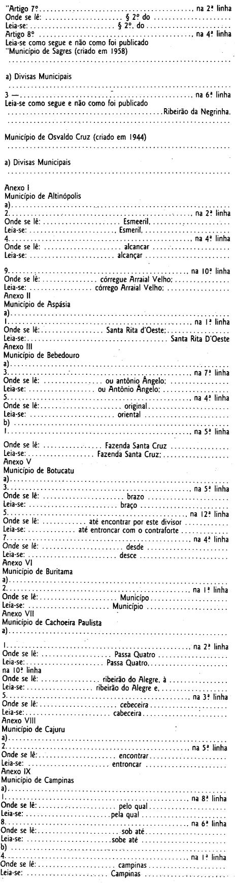 2.º - Ficam criados os seguintes Municípios: