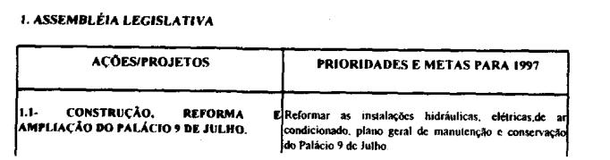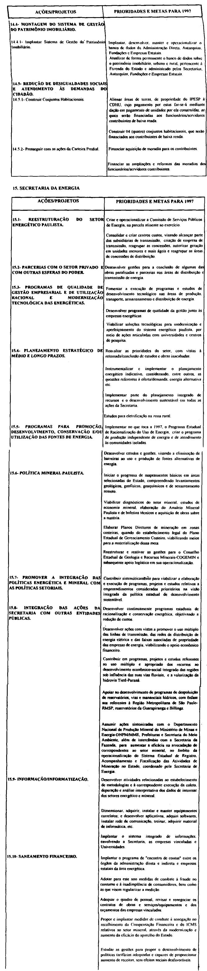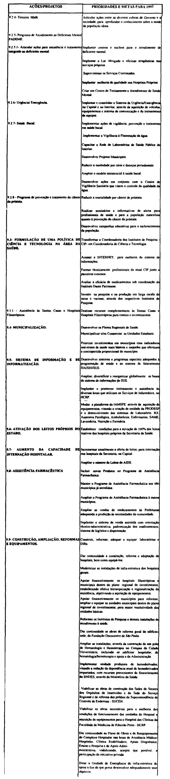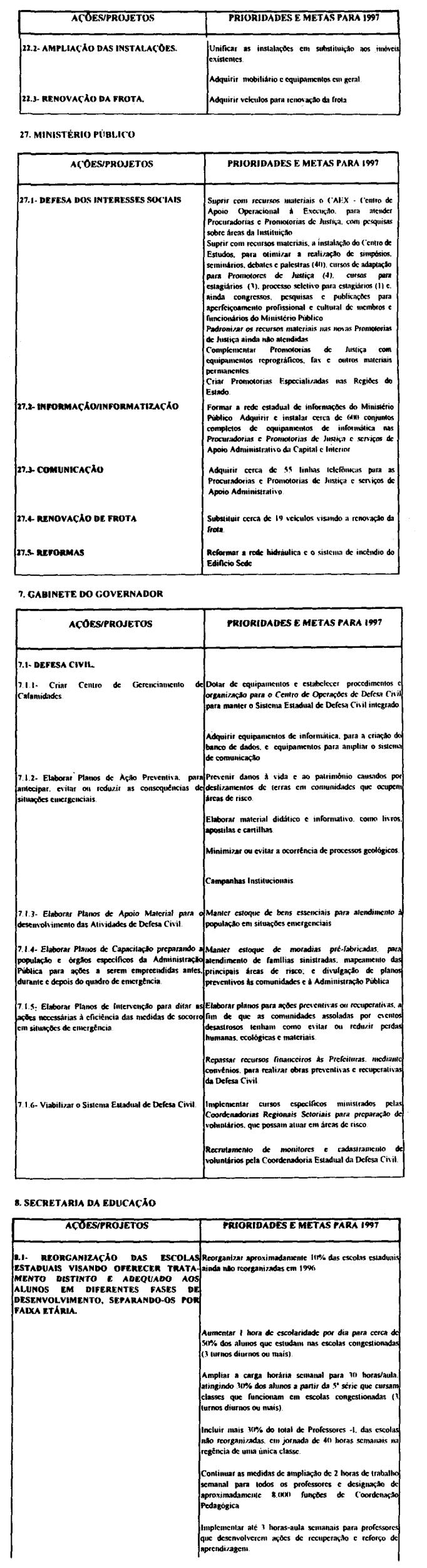 Artigo 8° - Constituem prioridades e metas da administração pública estadual para o exercício de 1997 as ações e os projetos elencados  detalhadamente no Anexo desta lei.