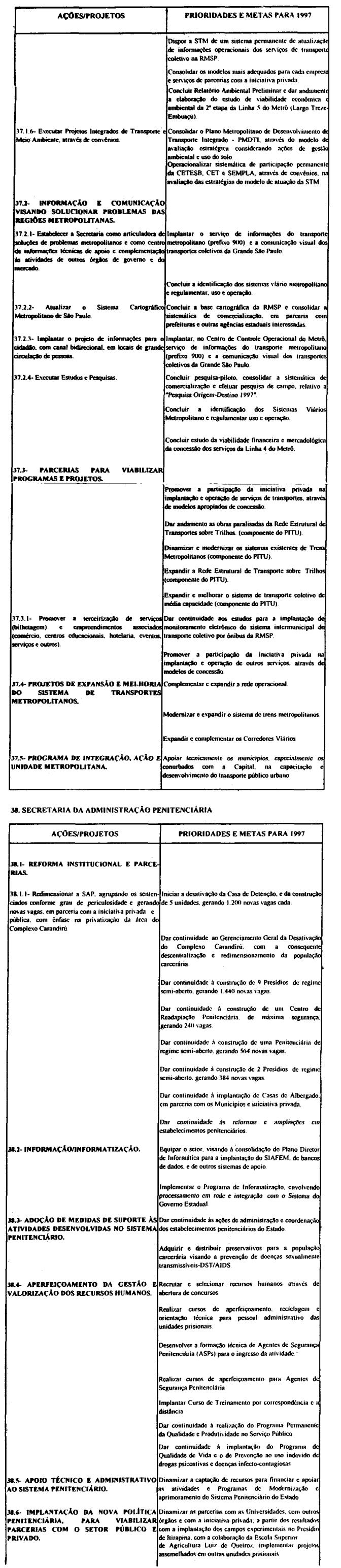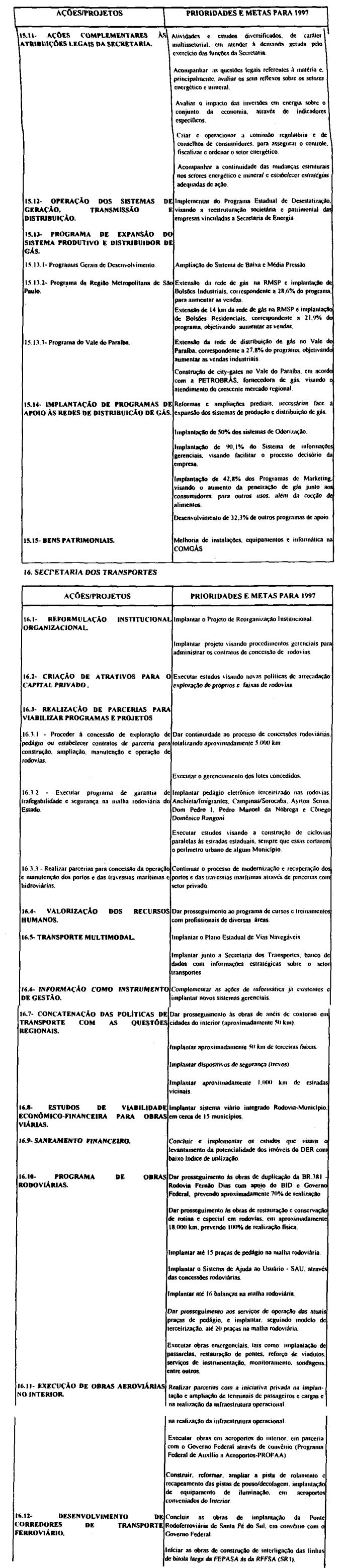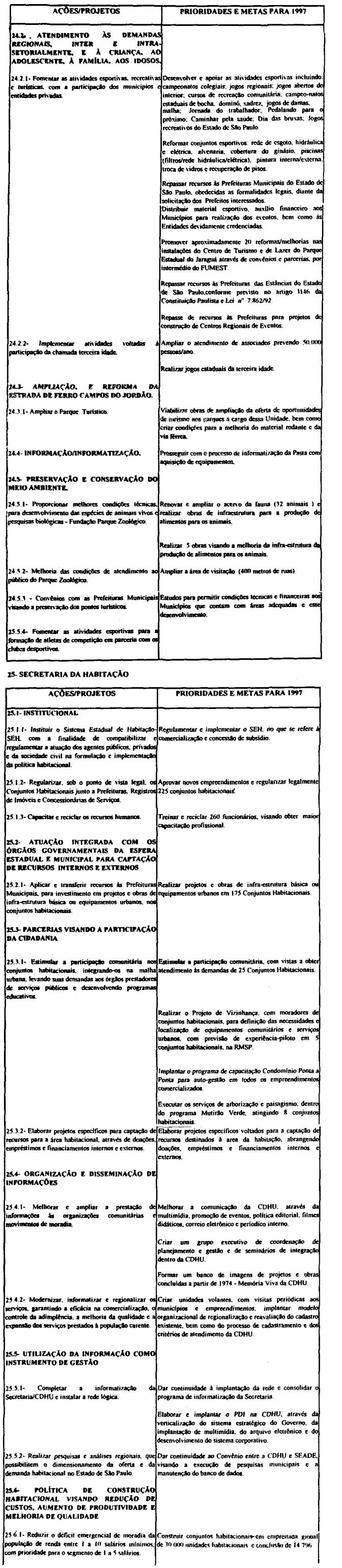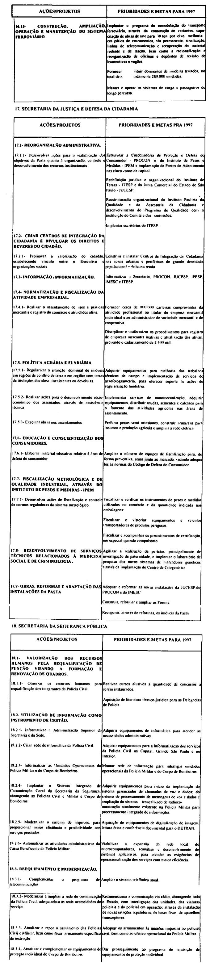 Artigo 3.° - A proposta orçamentária do Estado para 1997 conterá: