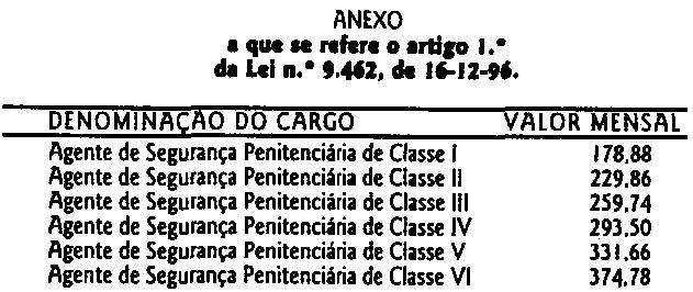 Artigo 1.º - Os valores dos padrões de vencimentos e salários dos integrantes da carreira de Agente de Segurança Penitenciária, de que trata o Artigo 2.° da Lei Complementar n. 681, de 22 de julho de 1992, alterado pela Lei Complementar n. 722, de 1 de julho de 1993, ficam fixados, em decorrência de reclassificação, na conformidade do Anexo desta lei.