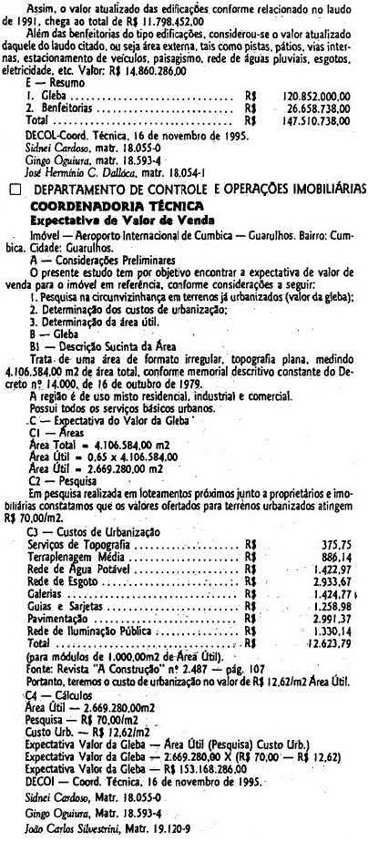 Expectativa Valor da Gleba - R$ 153.163.286.00