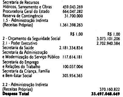 Artigo 1º - Esta lei orça a receita e fixa a despesa do Estado para o exercício de 1997, compreendendo:
