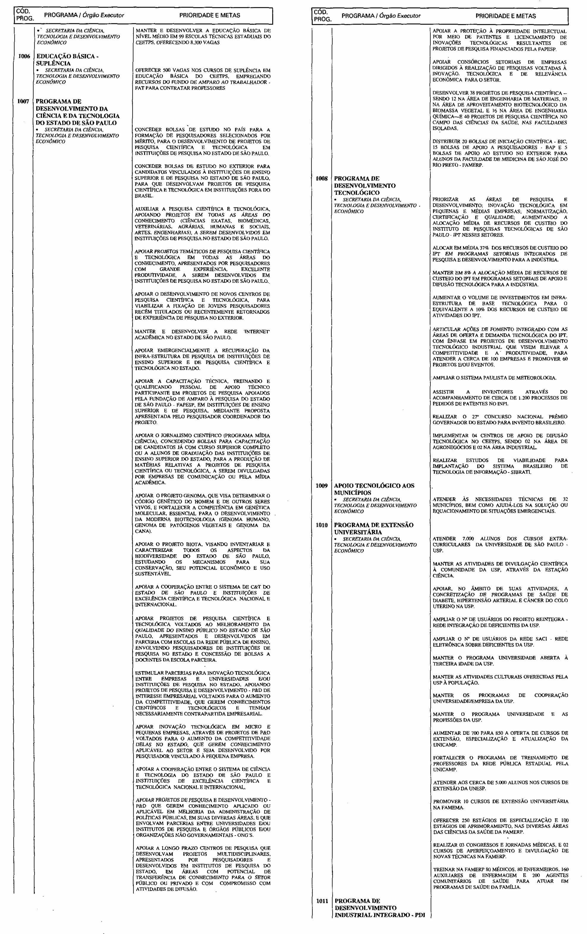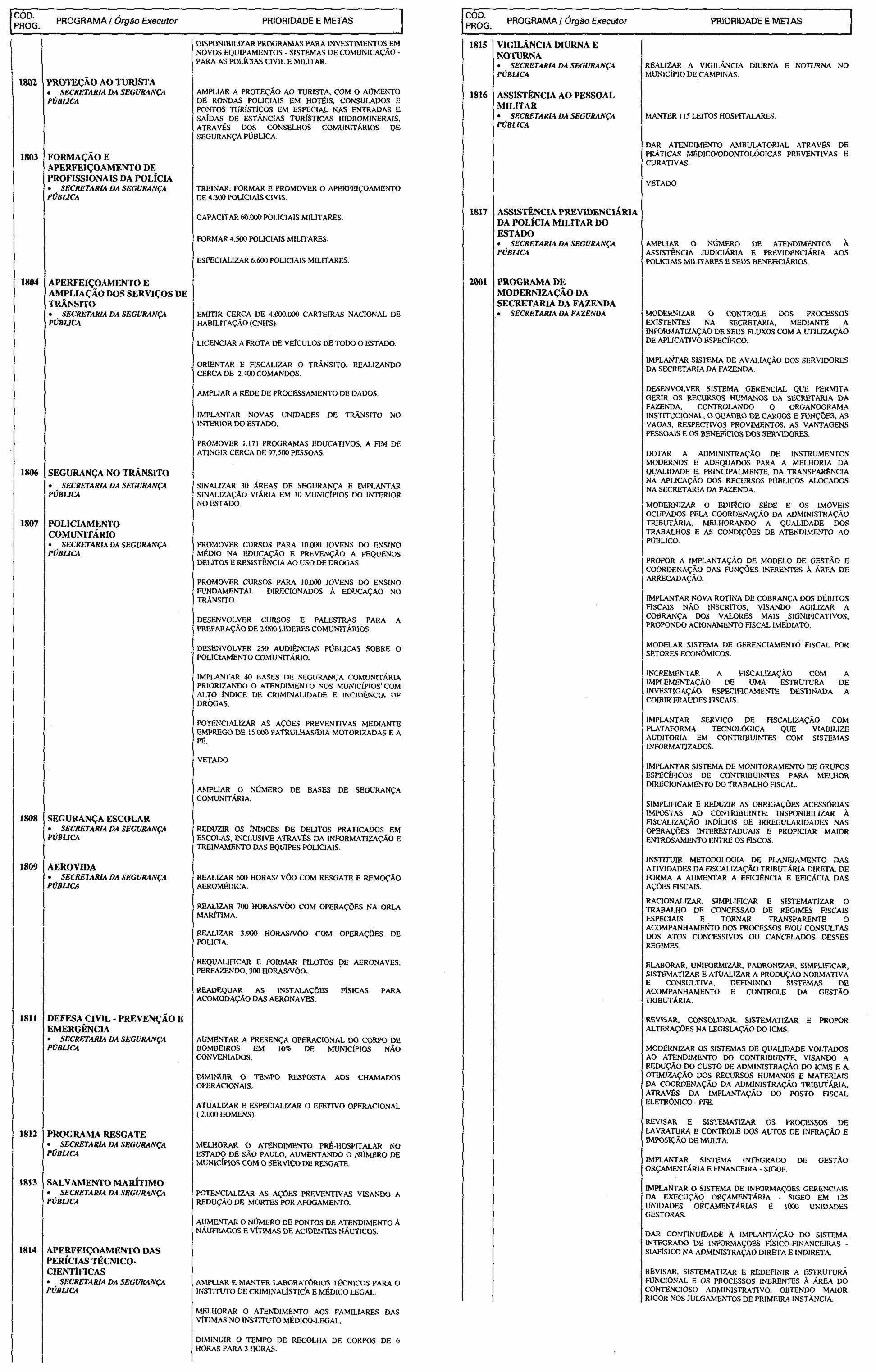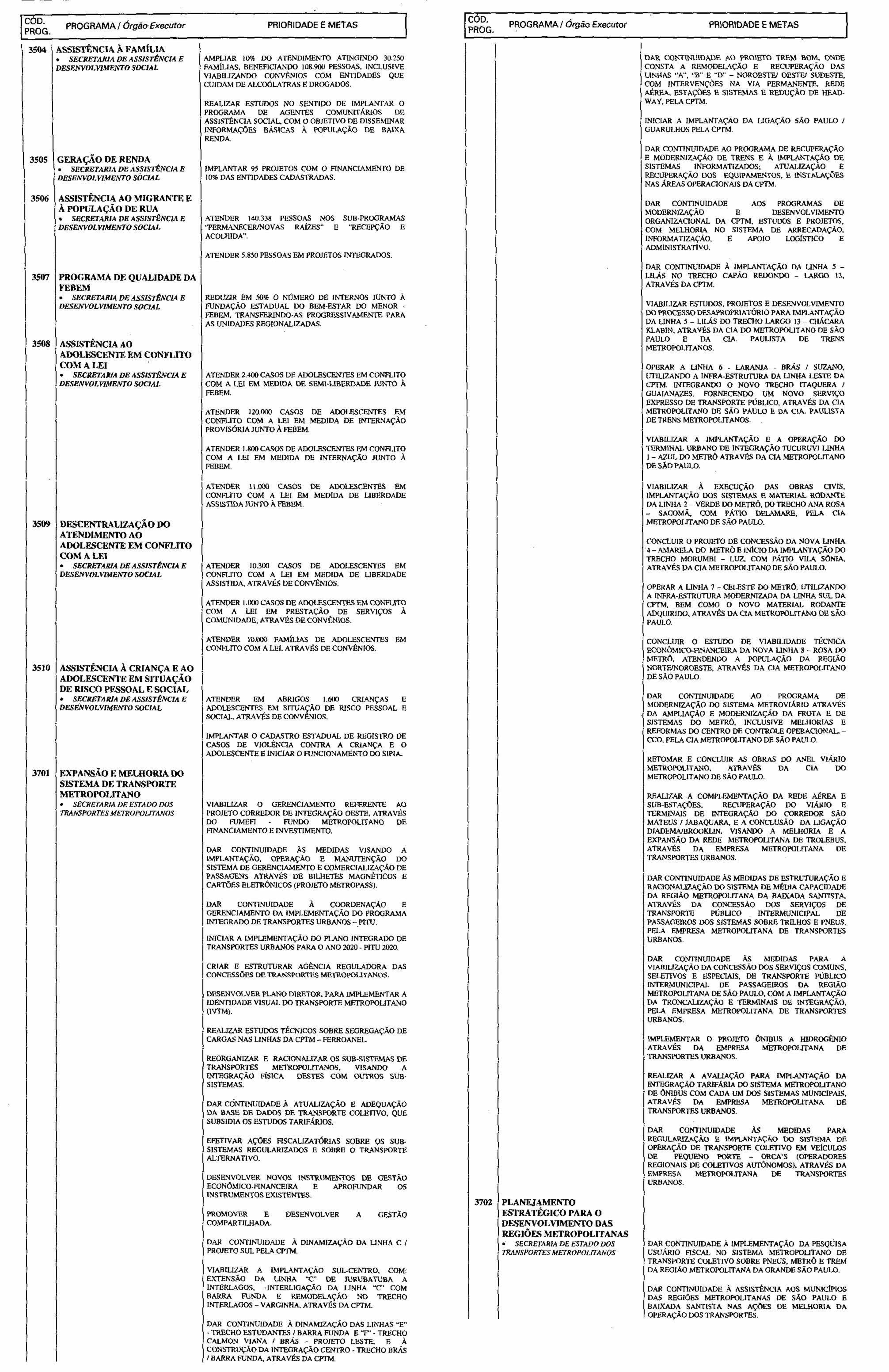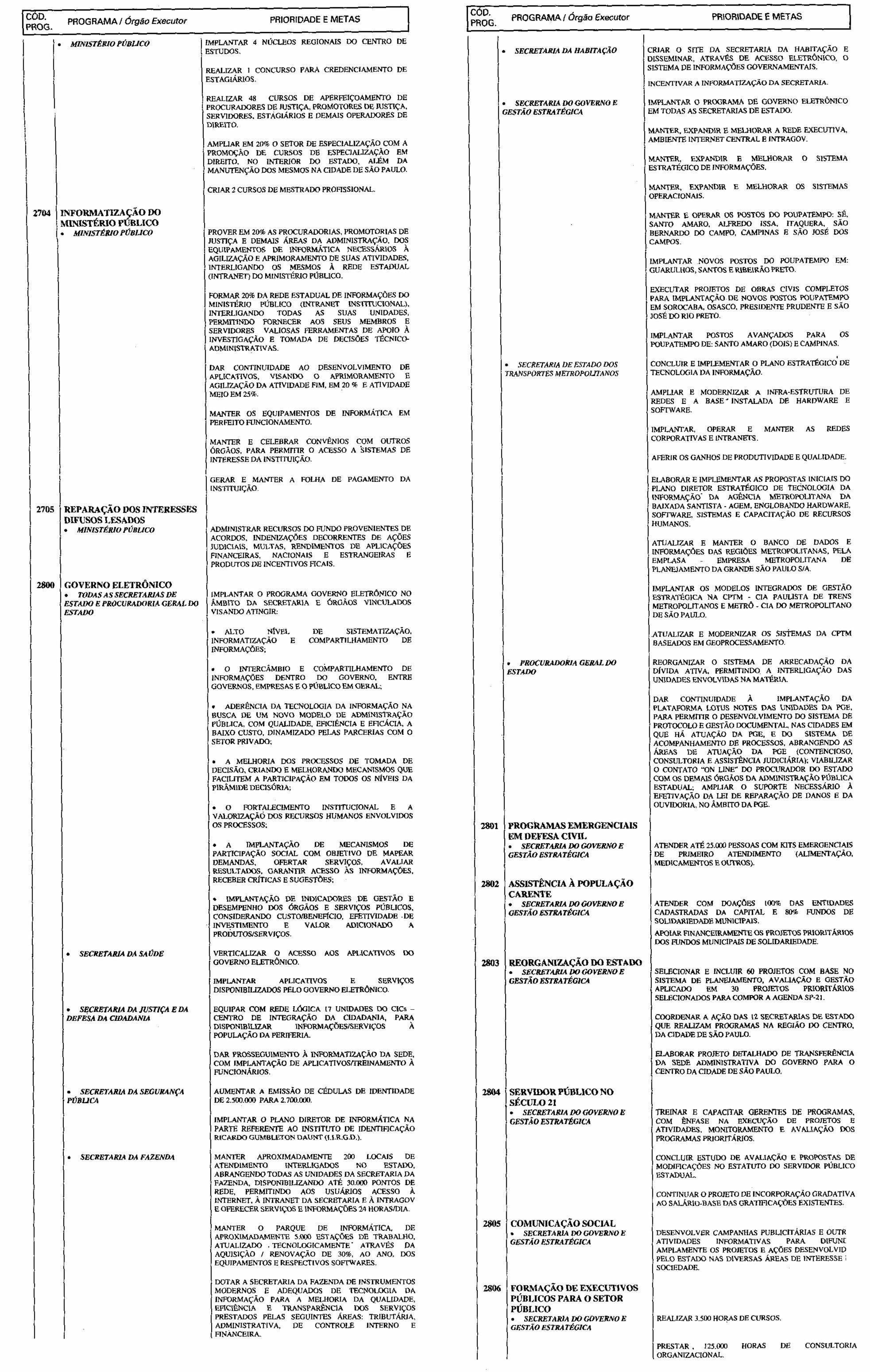 Artigo 3.º - A proposta orçamentária do Estado para 2001 será elaborada de forma compatível com o Plano Plurianual e com a presente lei e conterá: