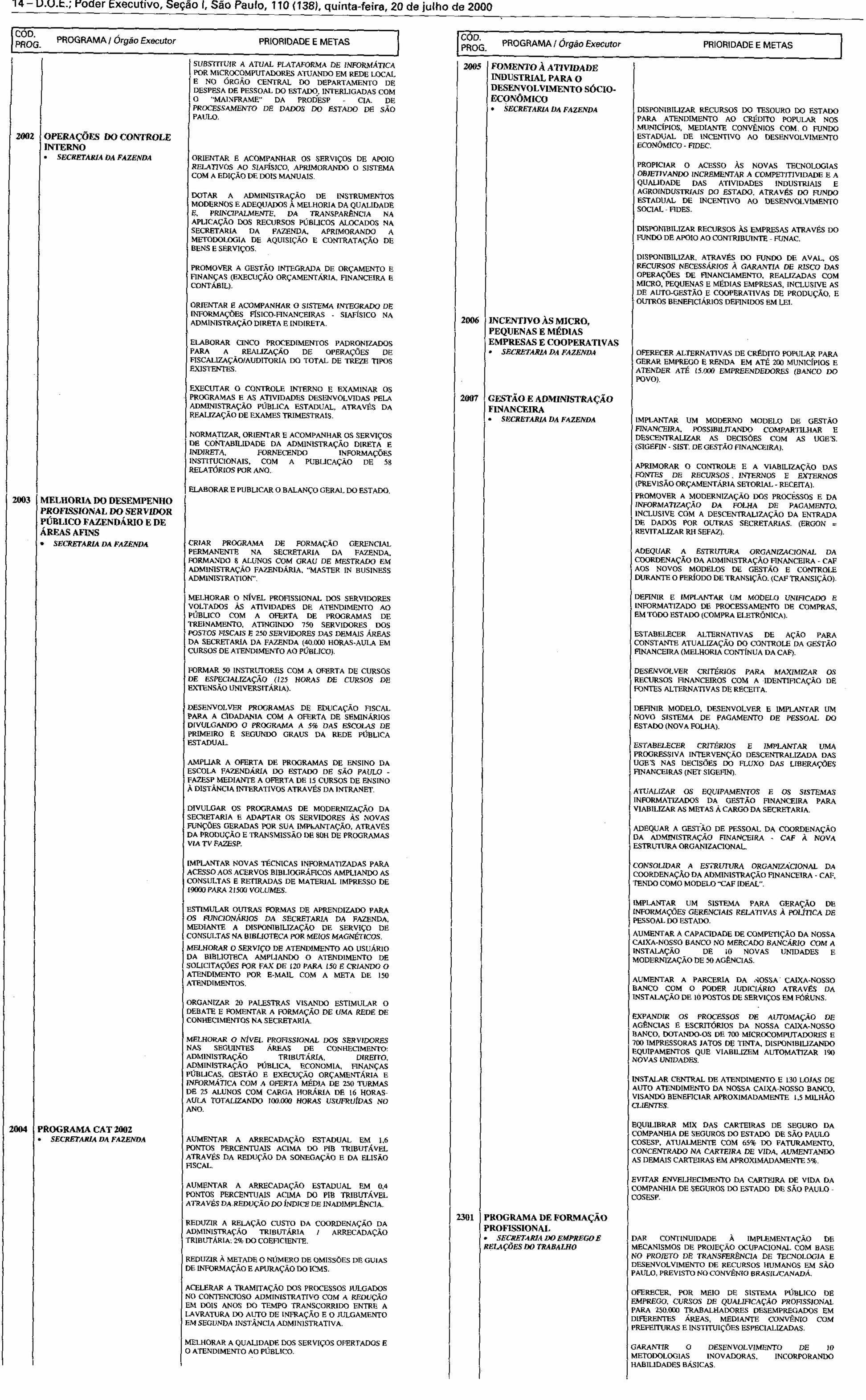 Palácio dos Bandeirantes, aos 19 de julho de 2000.