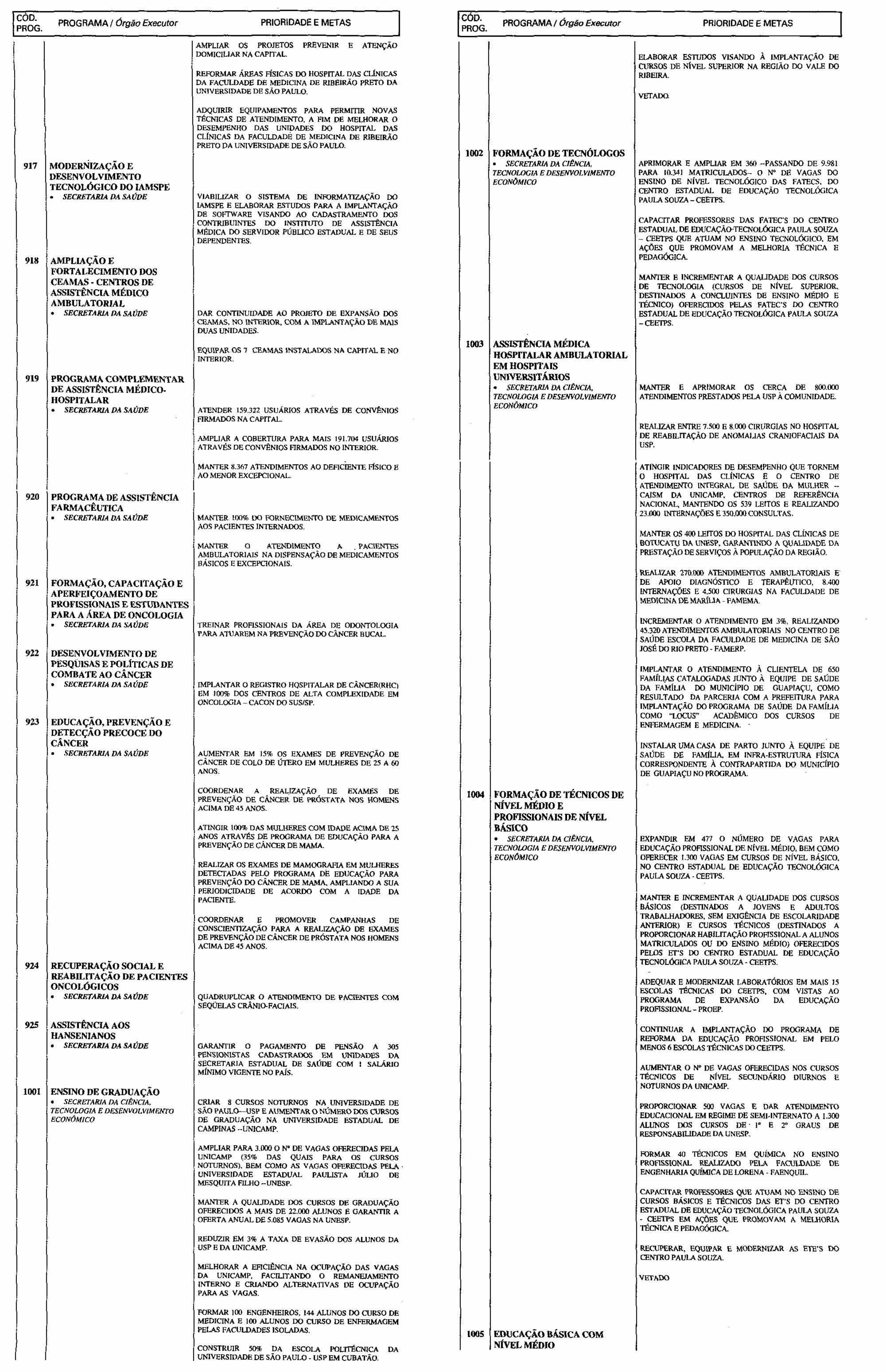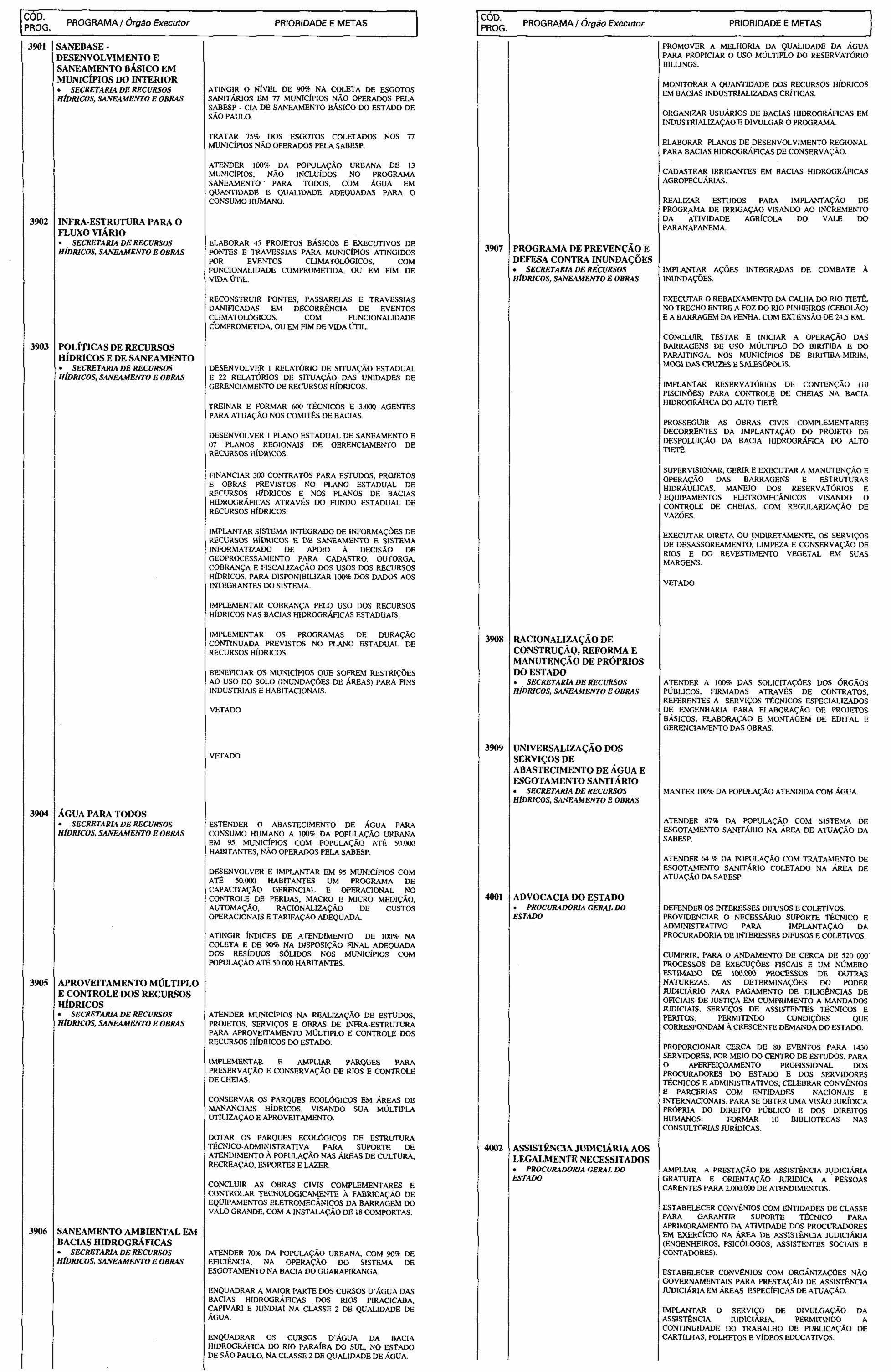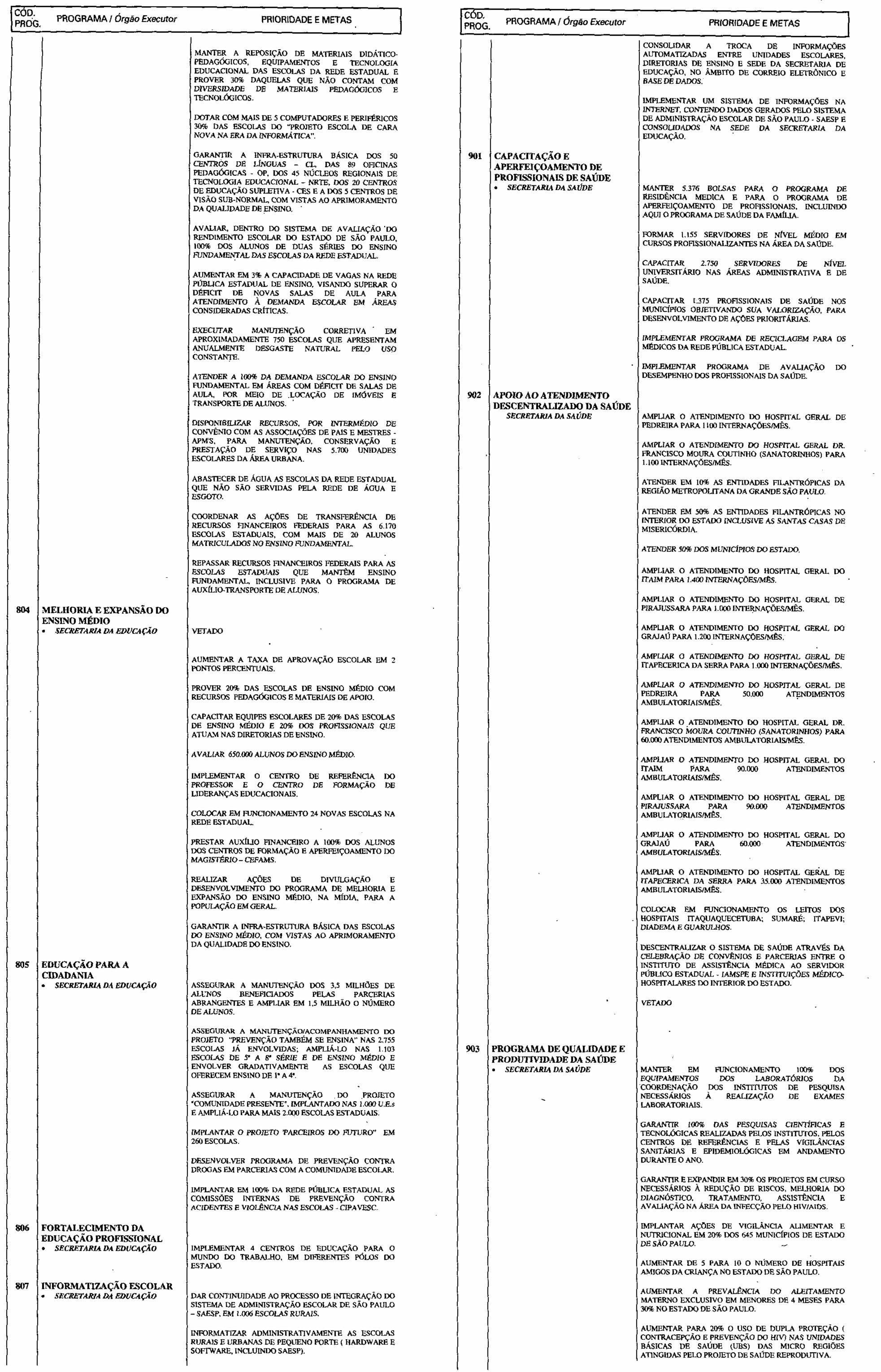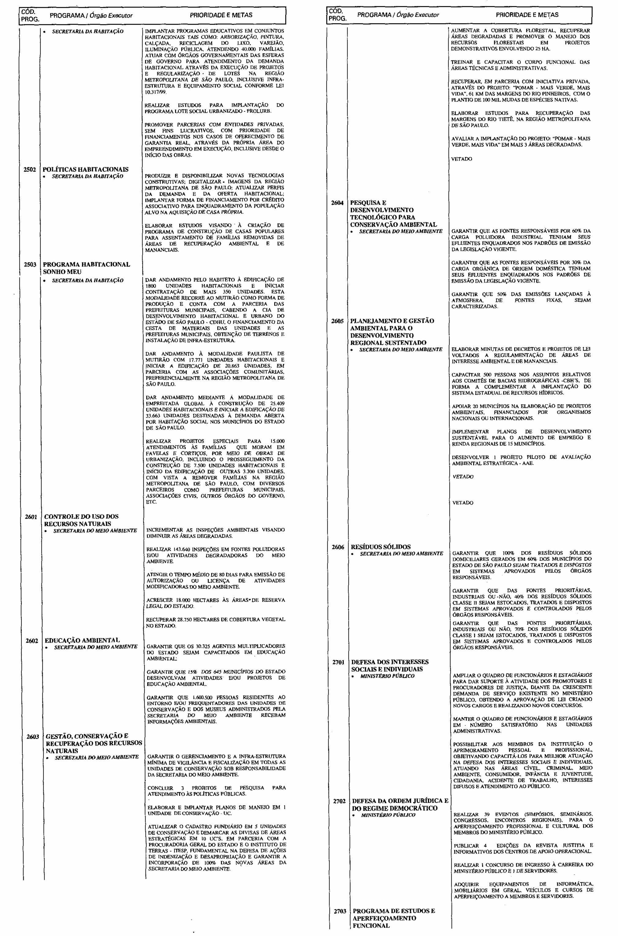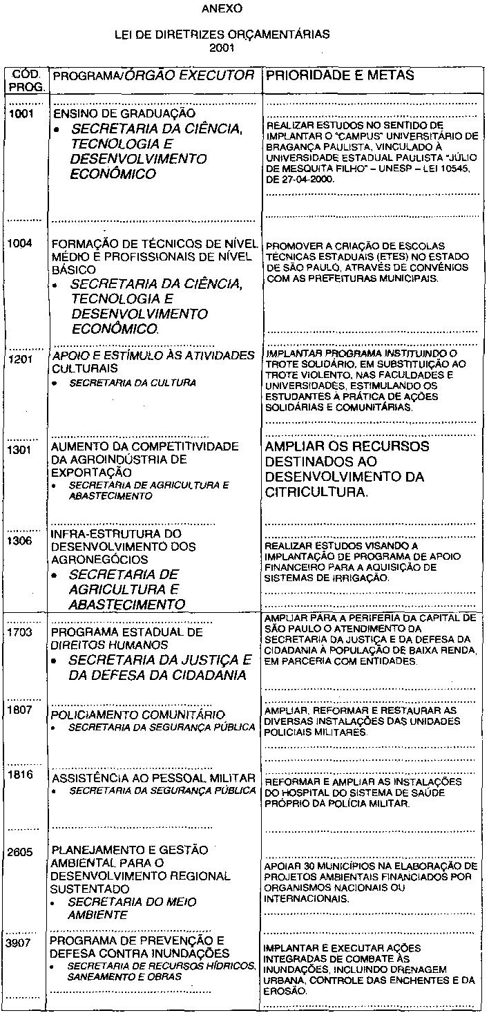 Partes vetadas pelo Senhor Governador do Estado e mantidas pela Assembléia Legislativa, do projeto que se transformou na Lei nº 10.616, de 19 de julho de 2000, que dispõe sobre as Diretrizes Orçamentárias para o exercido de 2001.