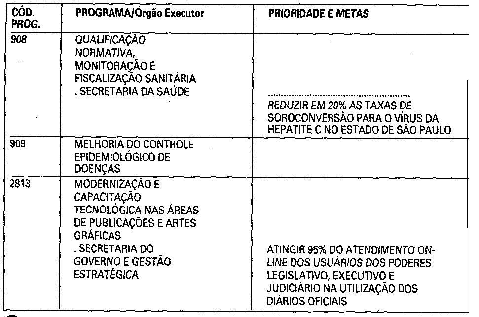 I - em anexo, demonstrativo da compatibilidade dos programas da administração pública estadual com suas respectivas prioridades e metas previstas no anexo desta lei;