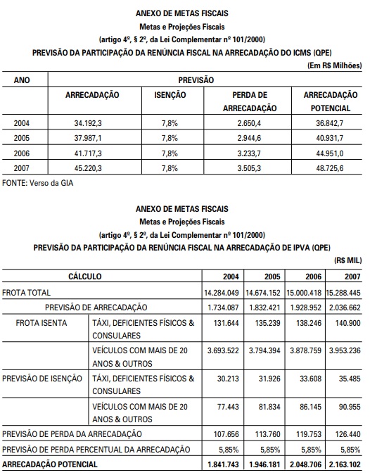 A explicitação desses passivos contingentes neste anexo representa mais um passo importante rumo à transparência fiscal. Entretanto, importa ressaltar que as ações judiciais aqui citadas representam apenas ônus potenciais, pois se encontram ainda em julgamento, não estando de forma alguma definido o seu reconhecimento pela Fazenda Estadual. Esclareça-se, por outro lado, que passivos decorrentes de ações judiciais com sentenças definitivas foram tratados como precatórios não configurando, portanto, passivos contingentes.