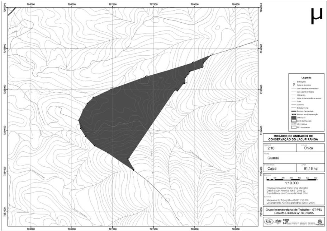 X - gleba nº 2.10, na região conhecida como Serra do Guaraú, no Município de Cajati, com área total de 81,18 ha (oitenta e um hectares e dezoito ares), que passa a compor a Zona de Amortecimento do Parque Estadual do Rio Turvo, instituído nos termos do inciso II do Artigo 5º desta lei;