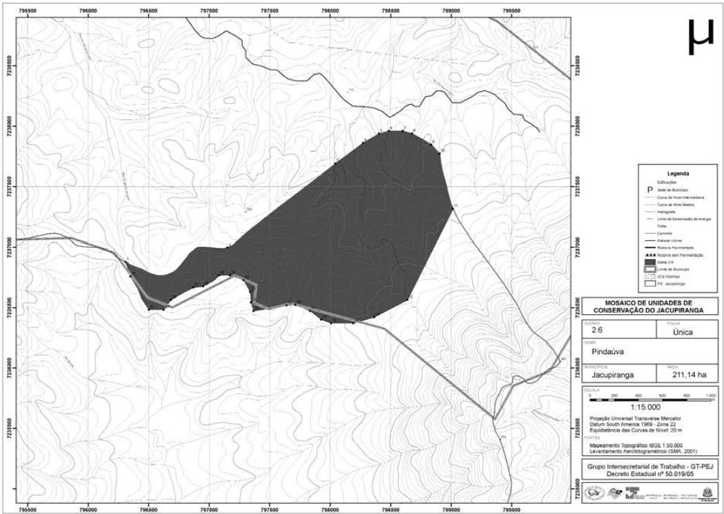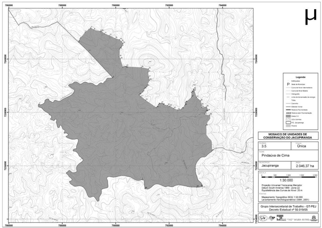 V - gleba nº 3.5, conhecida como Pindaúva de Cima, localizada no Município de Jacupiranga, com área de 2.046,37 ha (dois mil e quarenta e seis hectares e trinta e sete ares);