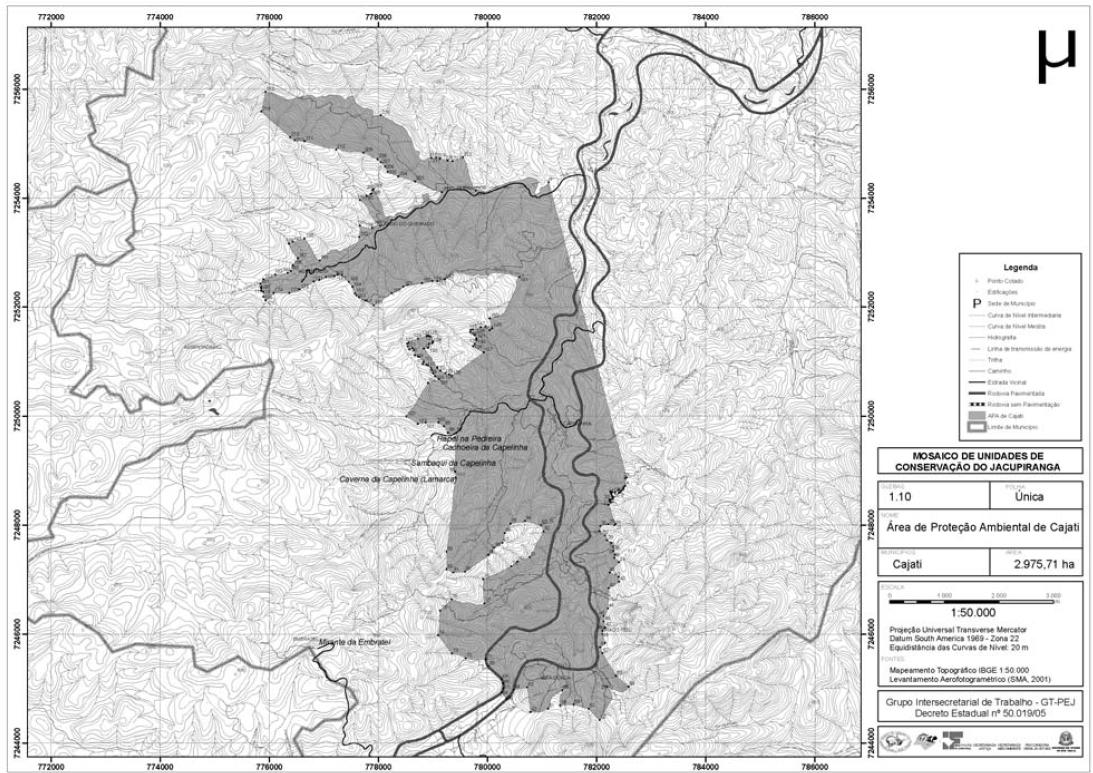 II - Área de Proteção Ambiental - APA de Cajati, com área de 2.975,71 ha (dois mil novecentos e setenta e cinco hectares e setenta e um ares), localizada no Município de Cajati, reclassificada pelo inciso VI do artigo 2º desta lei, cujos limites e confrontações são descritos no Anexo 14;