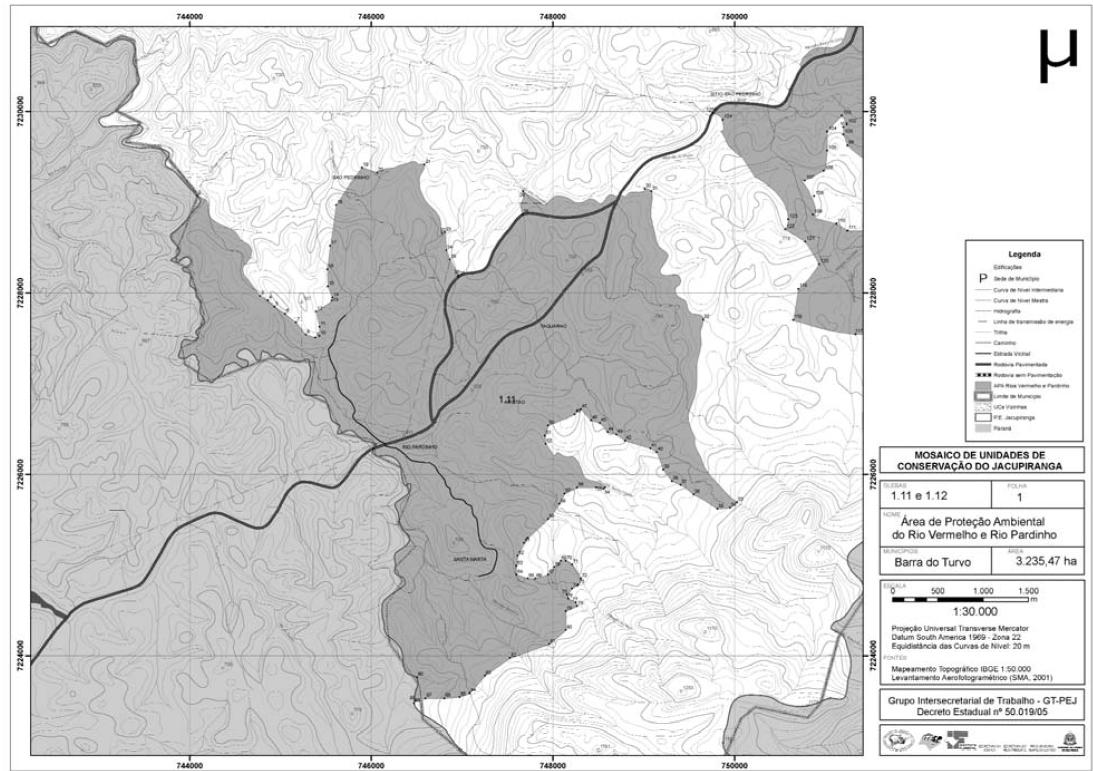 VII - glebas nº 1.11 e 1.12, conhecidas como Rio Pardinho e Rio Vermelho, situadas no Município de Barra do Turvo, com áreas de 1.637,15 ha (mil seiscentos e trinta e sete hectares e quinze ares) e 1.598,31 ha (mil quinhentos e noventa e oito hectares e trinta e um ares), respectivamente, somando um total de 3.235,47 ha (três mil duzentos e trinta e cinco hectares e quarenta e sete ares), que passam a compor a Área de Proteção Ambiental - APA do Rio Pardinho e Rio Vermelho, nos termos do inciso III do artigo 10 desta lei;