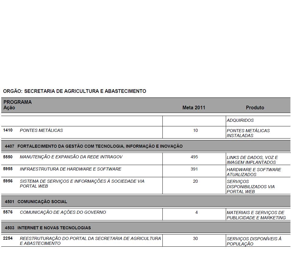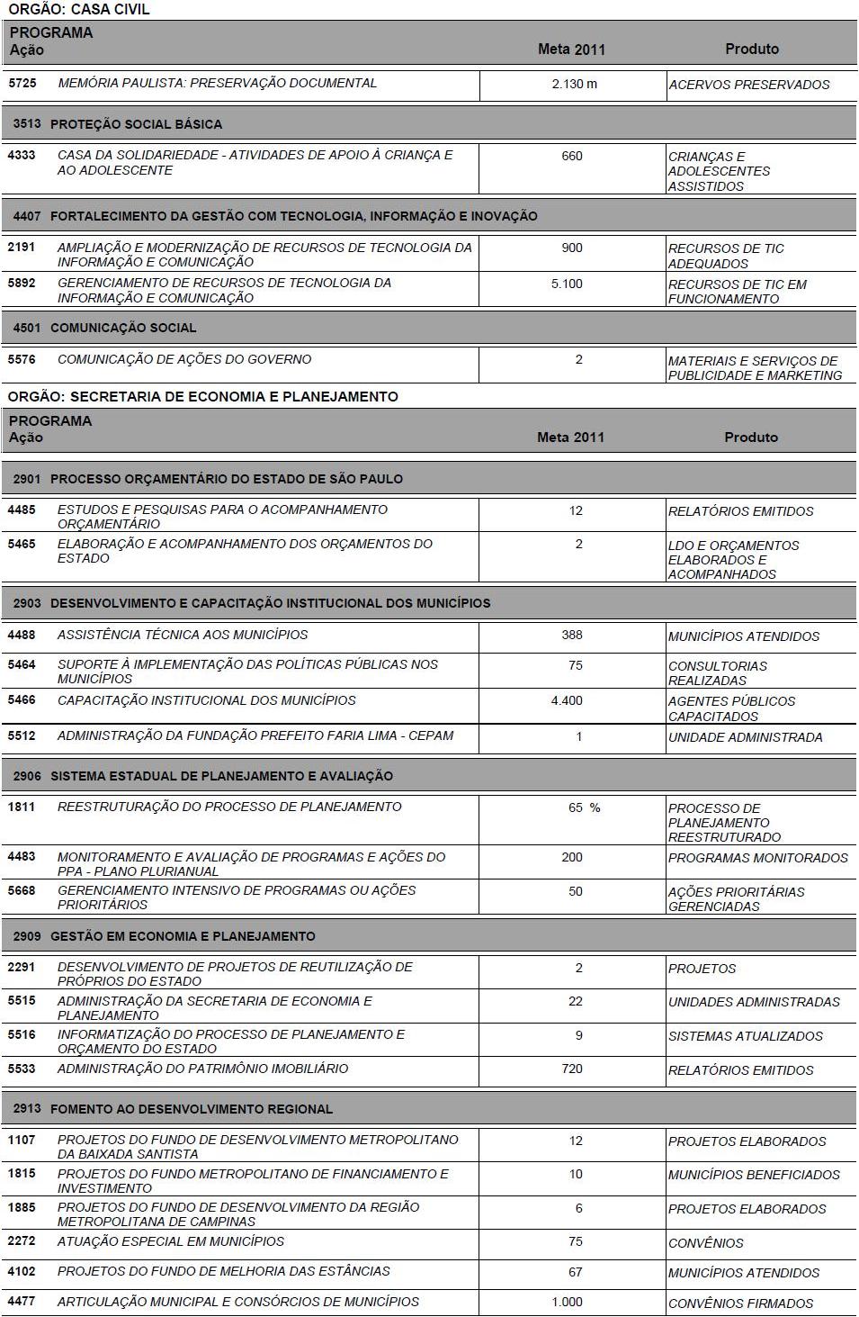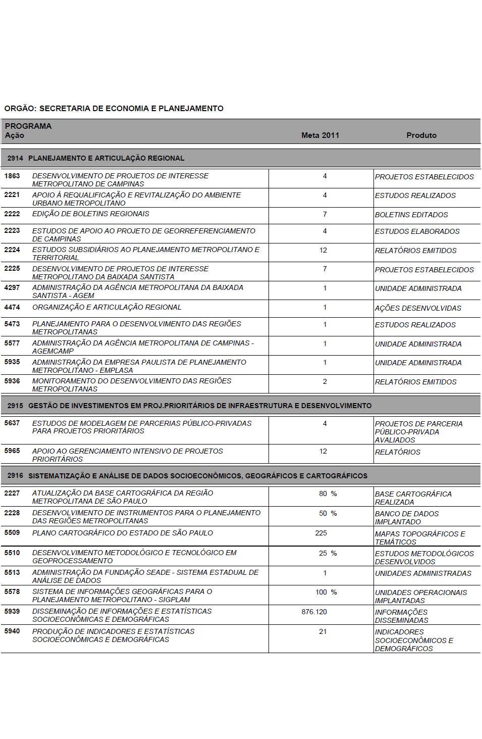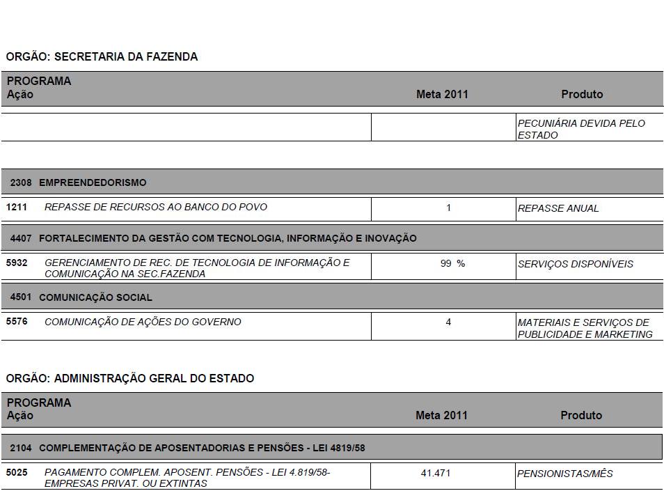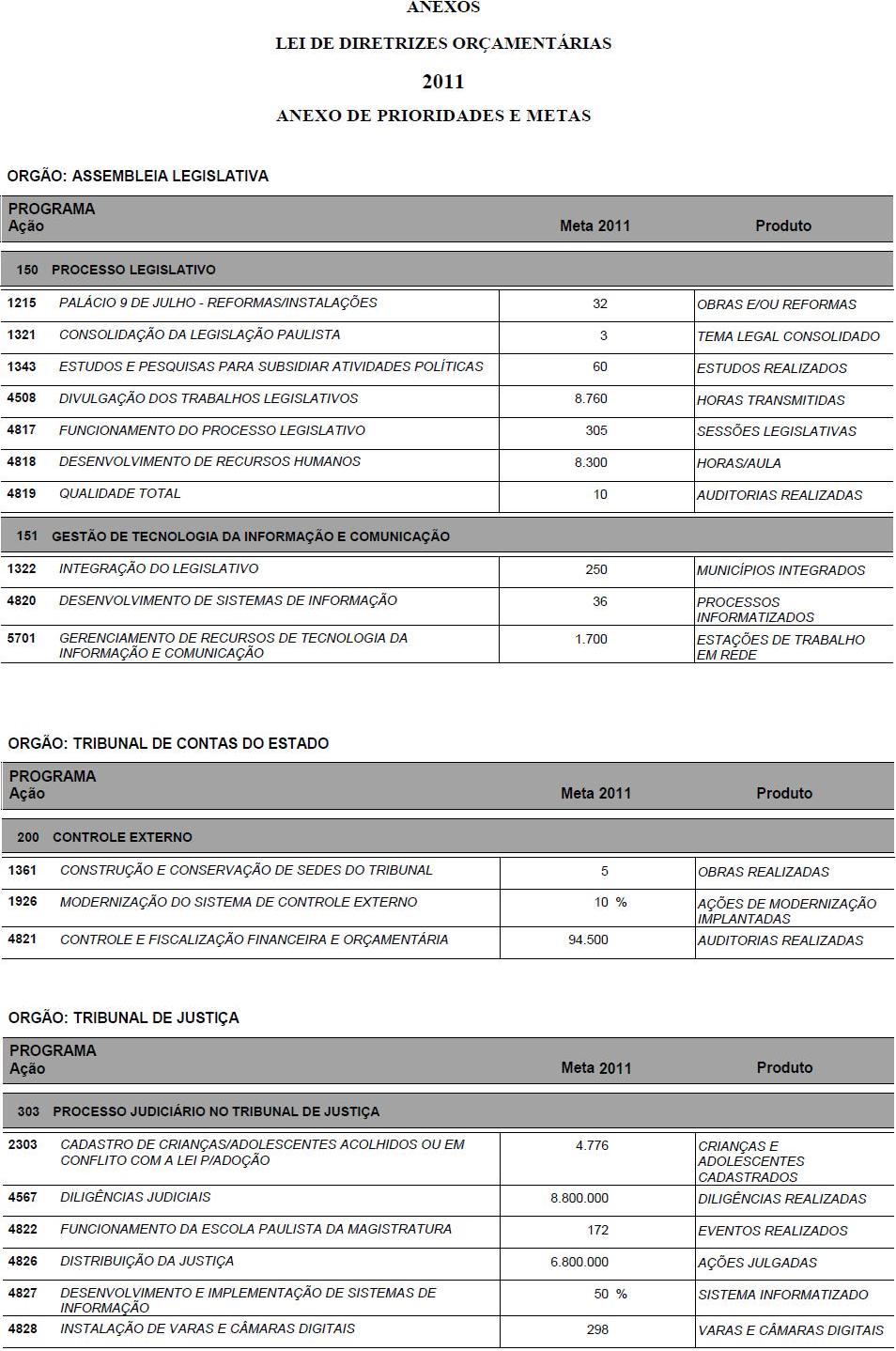 I - as metas e prioridades da administração pública estadual;