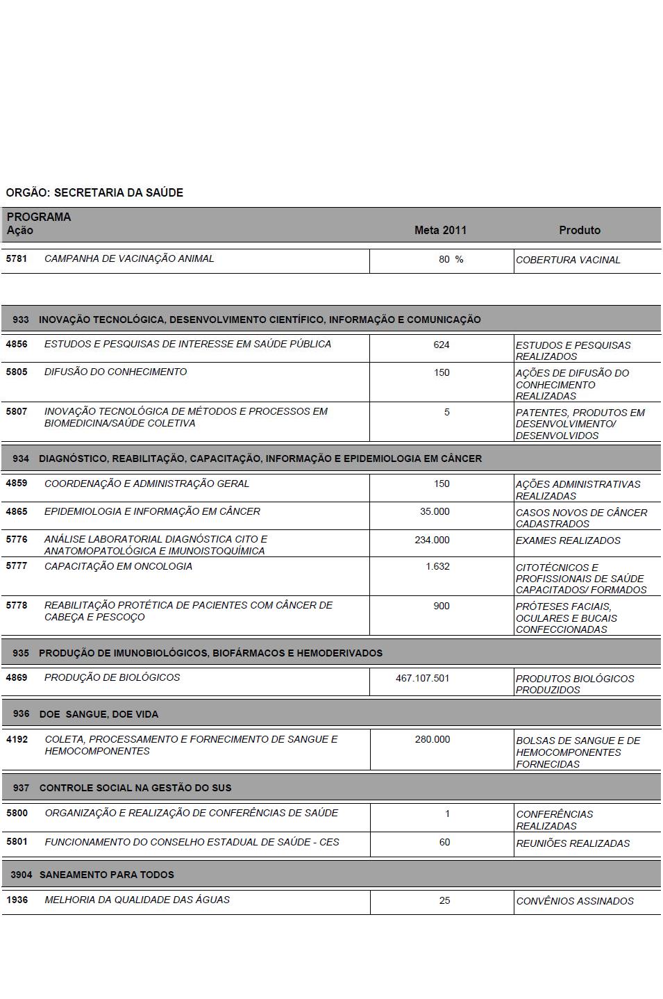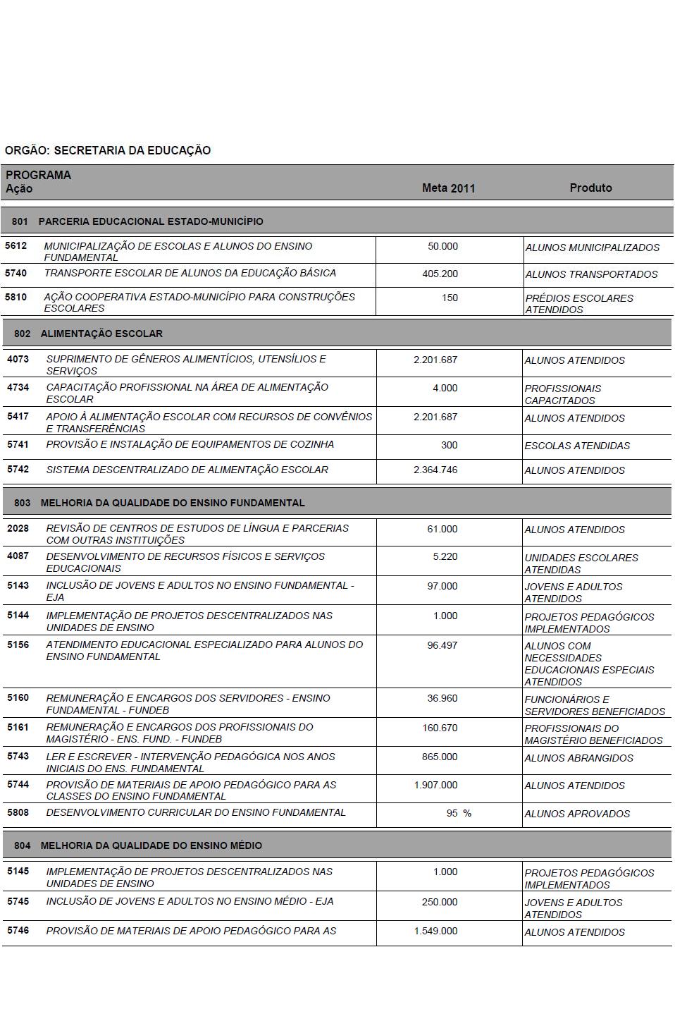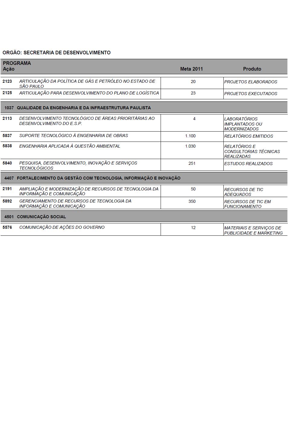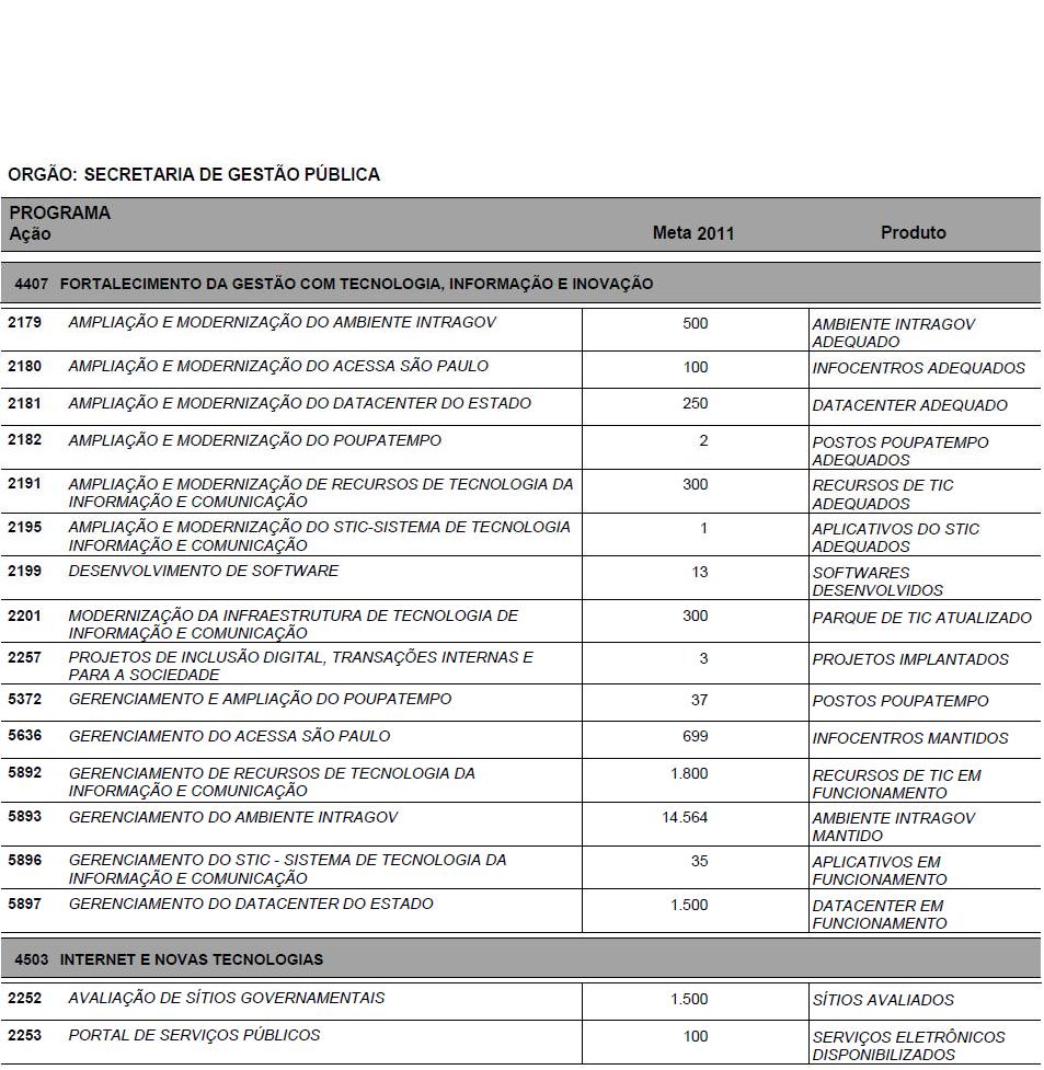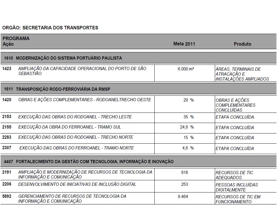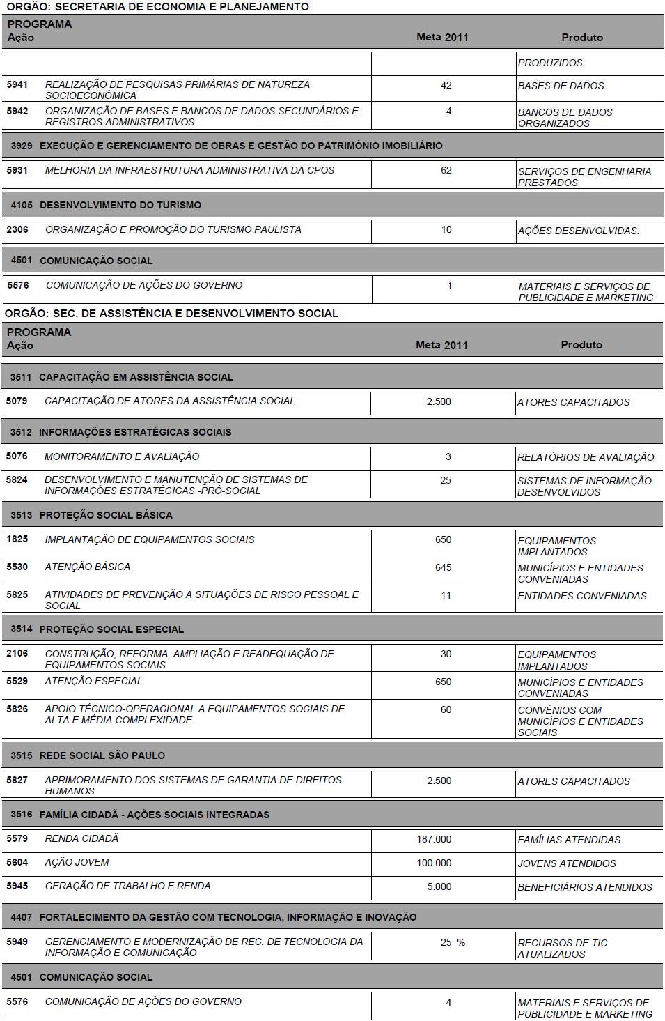 I - as metas e prioridades da administração pública estadual;