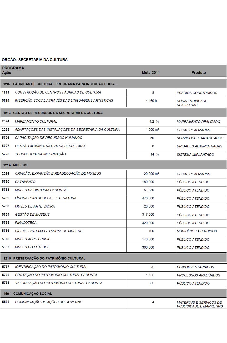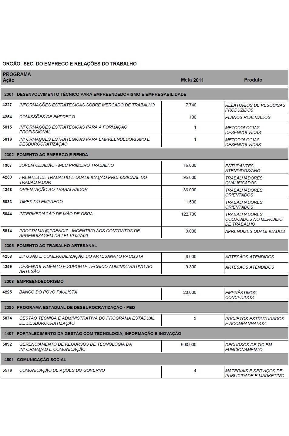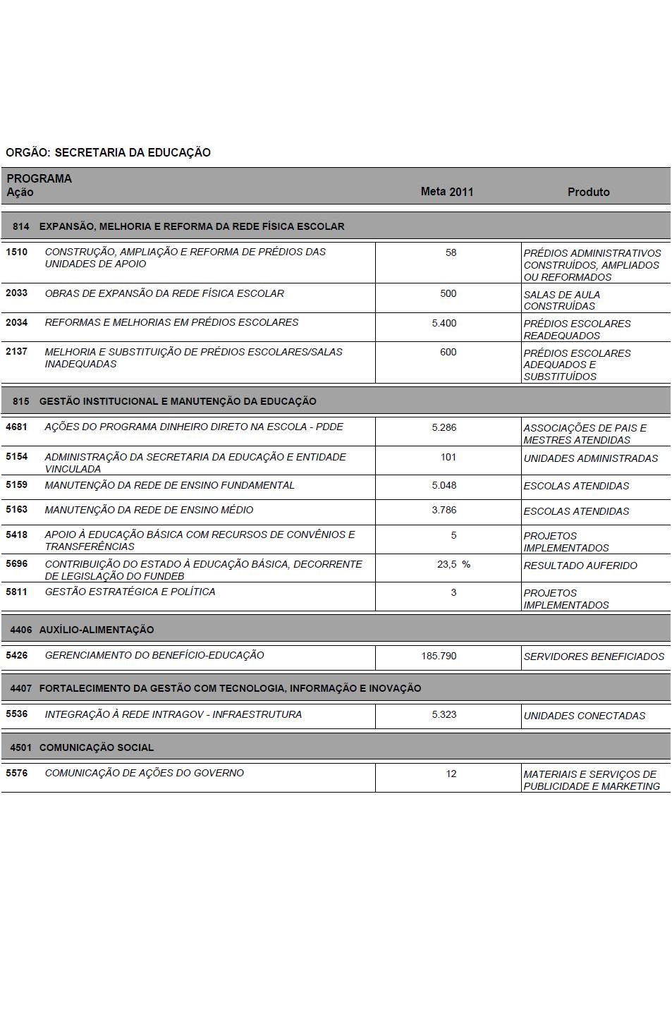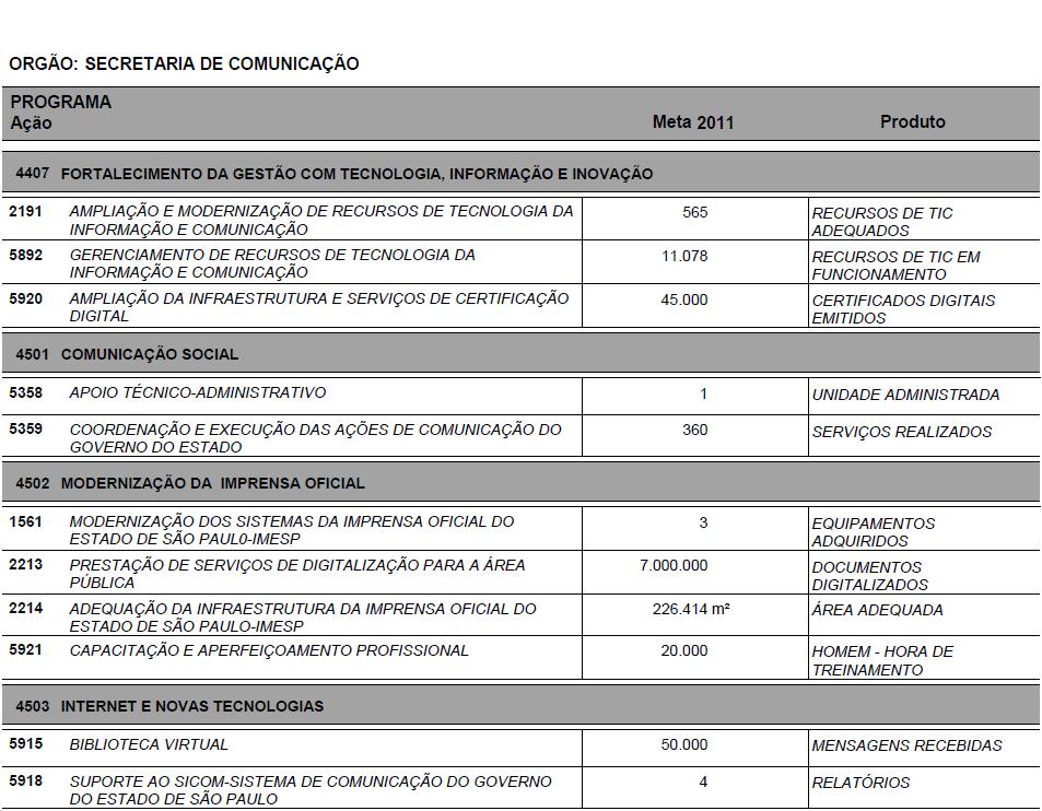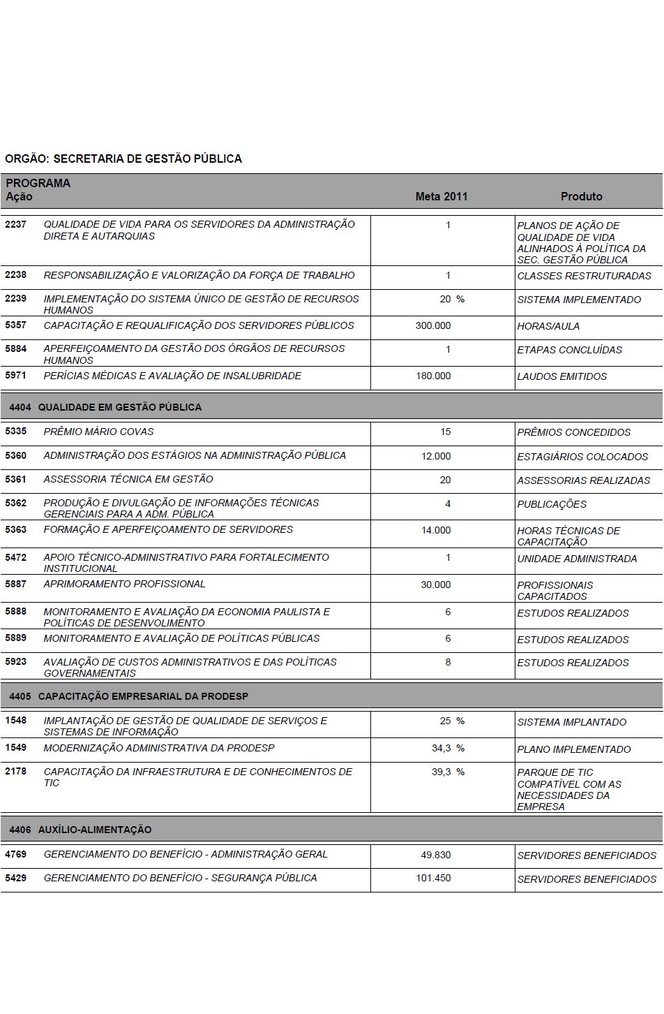 I - as metas e prioridades da administração pública estadual;