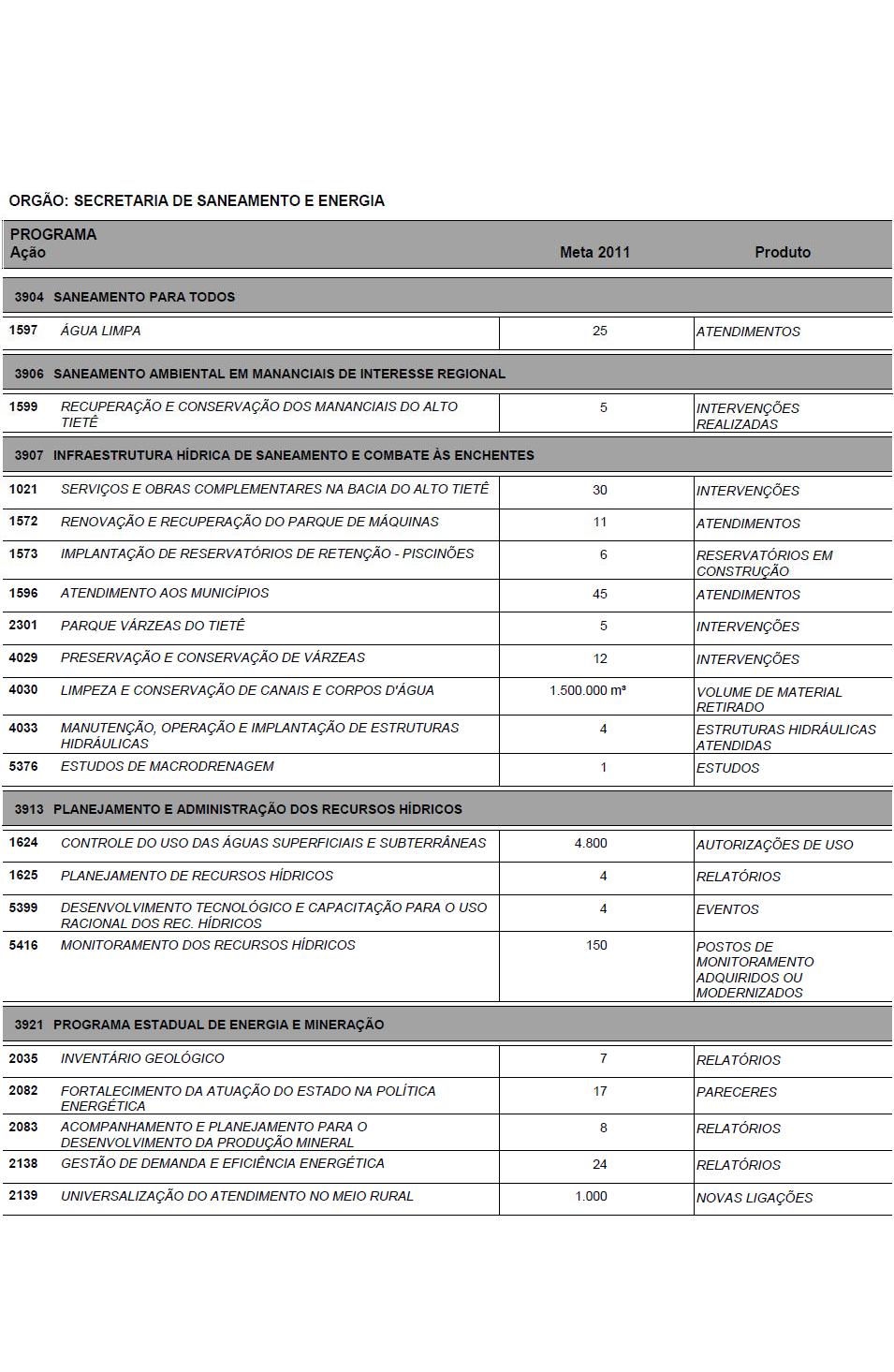 Dentre as ações envolvendo as autarquias estaduais que possam gerar impacto financeiro destacam-se as que seguem.