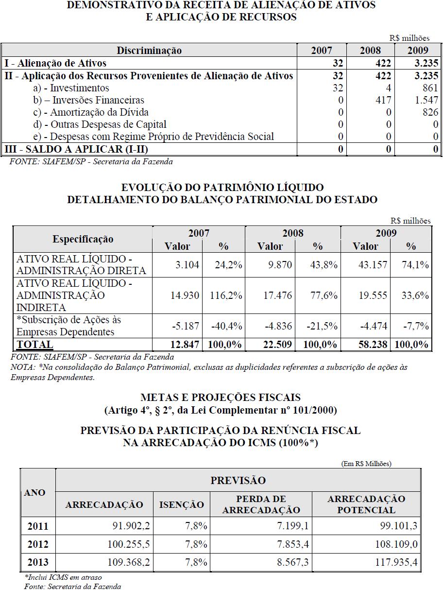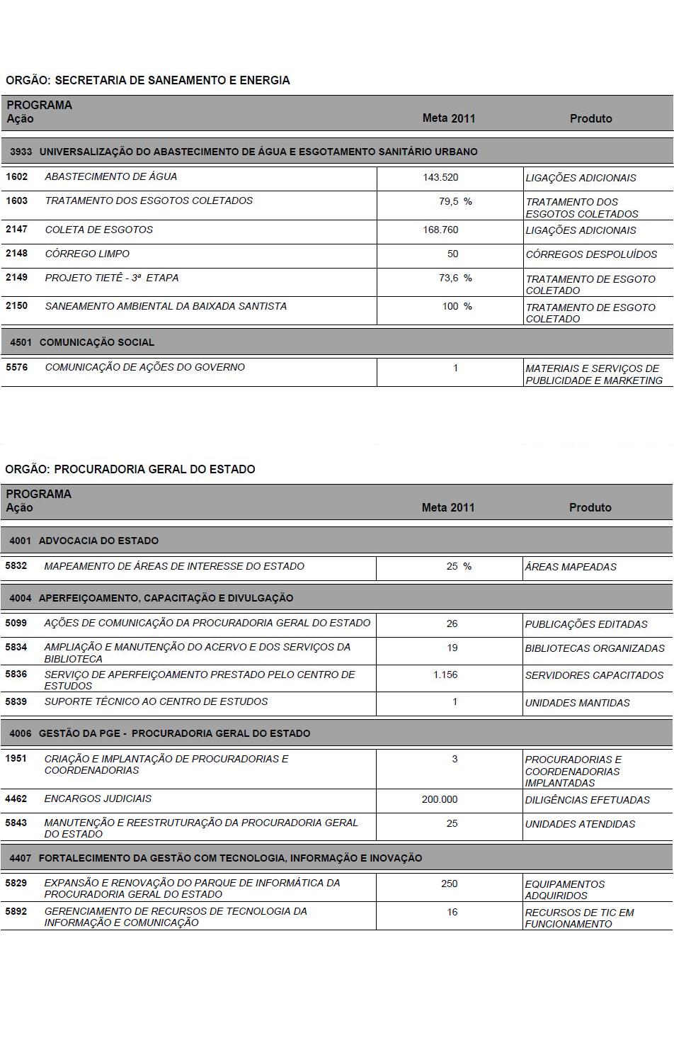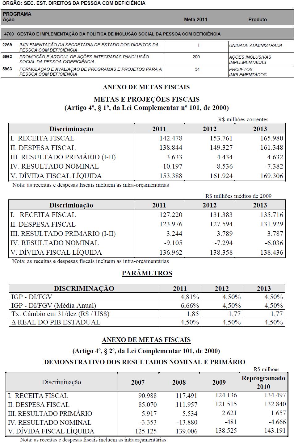 Artigo 14 - A proposta orçamentária do Estado para 2011 será encaminhada pelo Poder Executivo à Assembleia Legislativa até 30 de setembro de 2010, contendo: