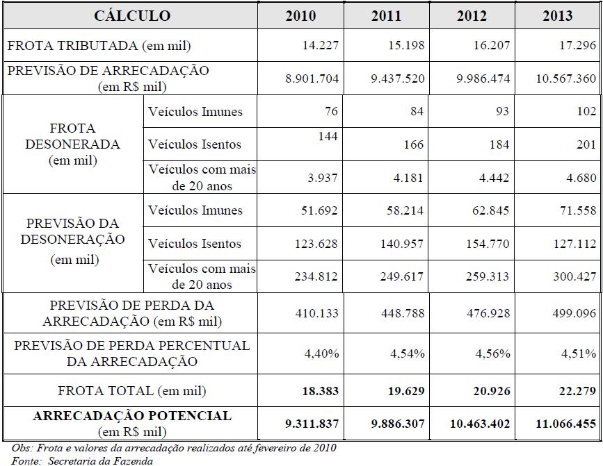 A receita do IPVA, que representou 7,4% da receita total em 2009, é afetada pela situação macroeconômica de três maneiras. Em primeiro lugar, um menor crescimento do PIB e por consequência da renda, traduz-se numa maior inadimplência do imposto e em uma menor venda de veículos. Estima-se que a diminuição do crescimento da frota em um ponto percentual, reduz a previsão de arrecadação do IPVA em 0,19%. Além disso, uma diminuição do preço dos veículos novos diminui também a arrecadação do IPVA sobre os mesmos.