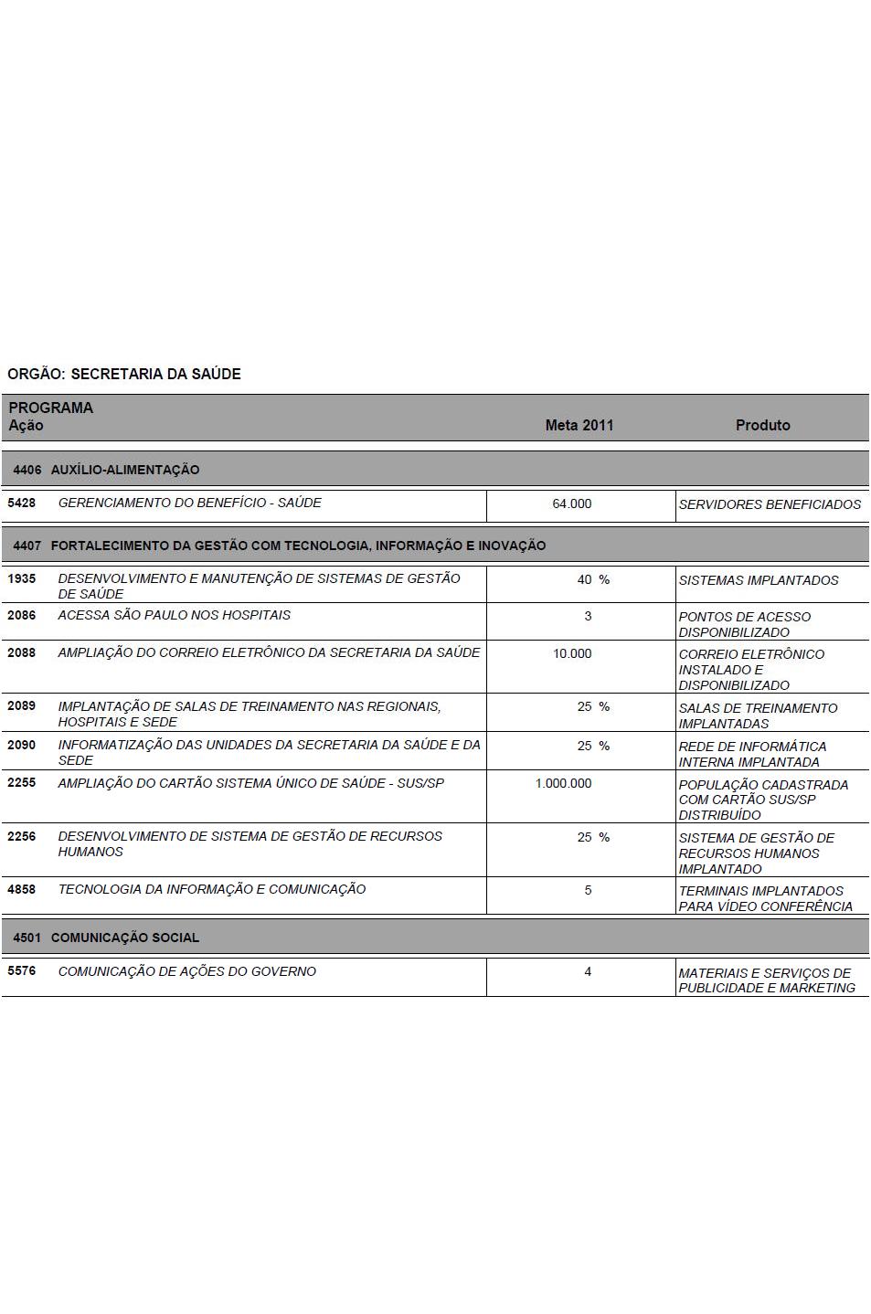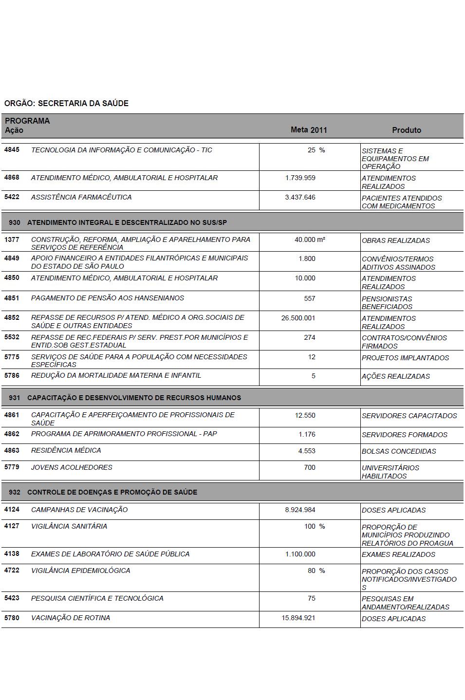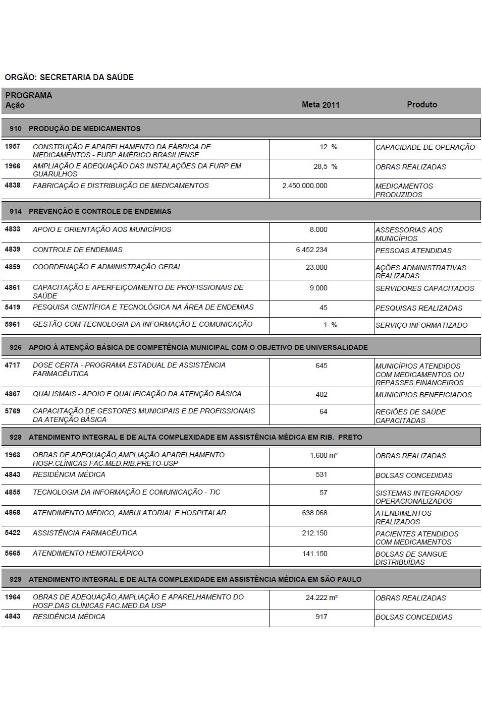 Nesse tema, registre-se a ação popular ajuizada no ano de 2004, na qual se sustenta que o Estado não vem aplicando, nas ações e serviços de saúde, o percentual mínimo estabelecido no artigo 77, inc. II, do Ato das Disposições Constitucionais Transitórias, com a redação que foi dada pela Emenda Constitucional nº 29, de 13 de setembro de 2000. Sustenta, para tanto, que os indicativos oficiais, que demonstram, em tese, o cumprimento da norma constitucional, não correspondem à realidade, na medida em que neles estão incluídos programas que não têm natureza de ação ou serviço público de saúde, concluindo, de forma equivocada, que mais de 2 bilhões de reais não foram destinados ao atendimento das necessidades e ações que caracterizam a política de saúde. Tal ação foi julgada extinta sem exame do mérito, tendo os autores da ação popular interposto recurso de apelação, ao qual foi negado seguimento (autos n. 417.980.5/5-00). Embora tenha sido favorável a sentença - ainda sujeita a julgamento de recurso, a MM. Juíza declarou haver indícios de irregularidade na aplicação dos recursos obrigatórios da área de saúde, tendo no mesmo ato determinado a expedição de ofício ao Ministério Público Estadual para a devida apuração.