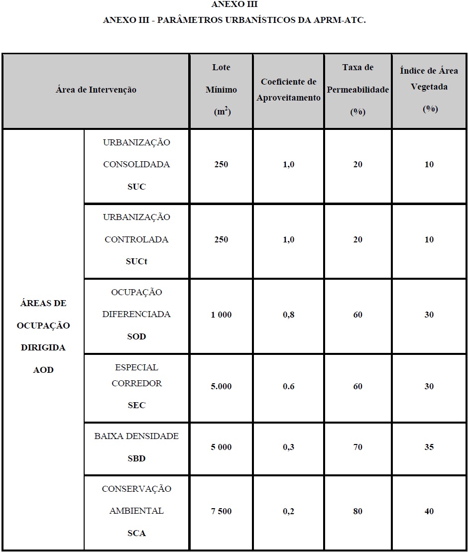 § 2º - Não se aplica o parâmetro urbanístico de tamanho de lote definido no Anexo III desta lei aos lotes de terrenos edificados e aos parcelamentos do solo aprovados pelos municípios integrantes da APRM-ATC ou devidamente registrados anteriormente à vigência das Leis nº 898, de 1975 e nº 1.172, de 1976.