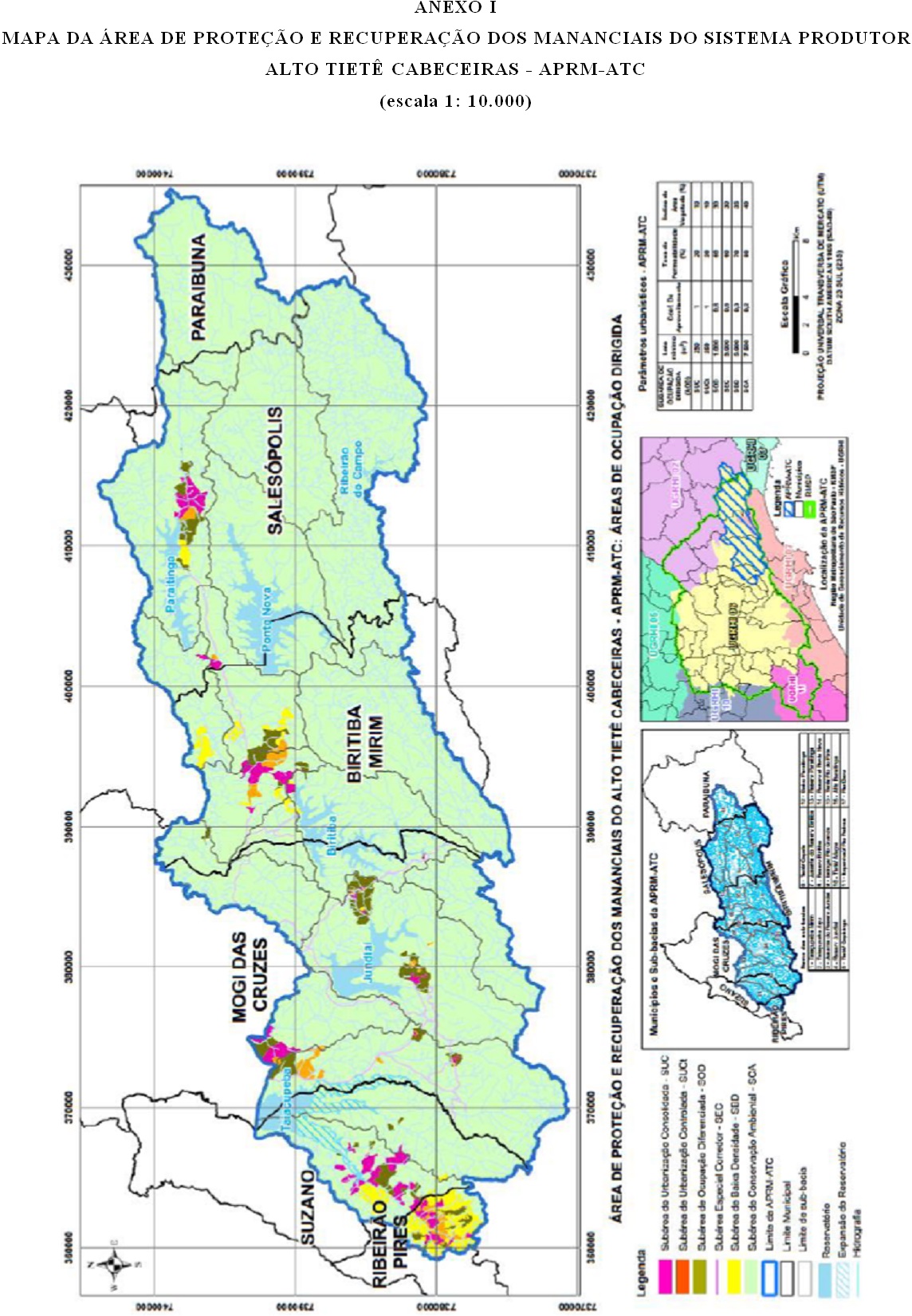 § 2º - A delimitação da APRM-ATC, compreendendo parcialmente os Municípios de Biritiba Mirim, Mogi das Cruzes, Paraibuna, Ribeirão Pires, Salesópolis e Suzano, será lançada graficamente e incorporada ao Sistema Gerencial de Informações - SGI, conforme regulamentação desta lei.