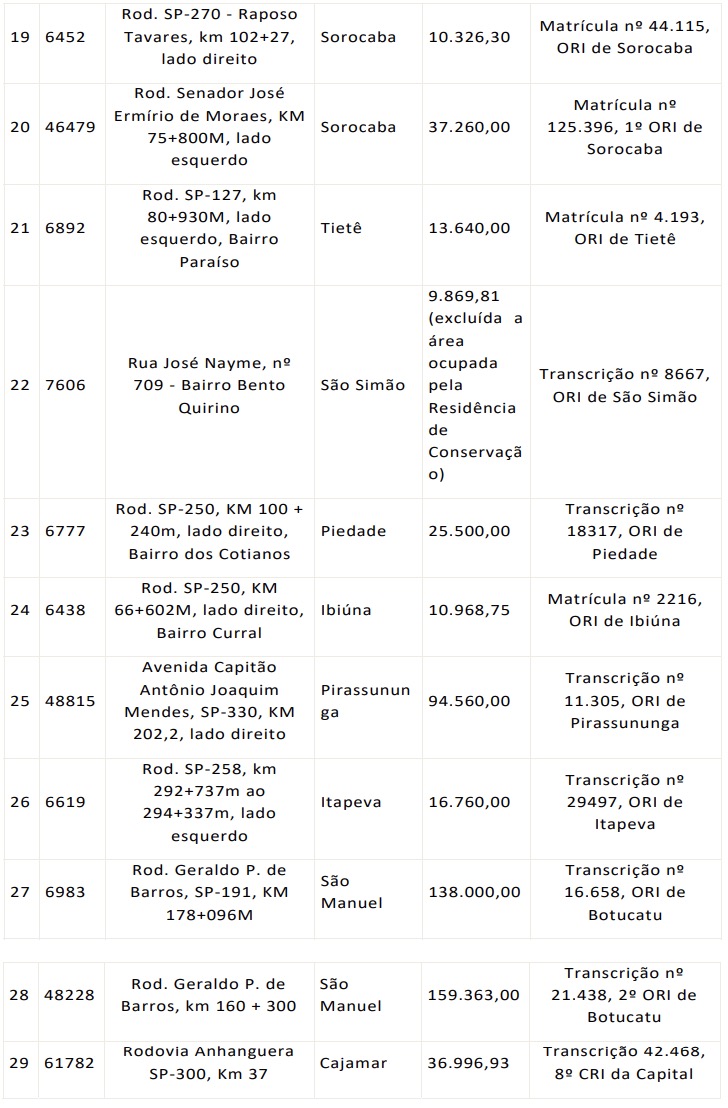 Anexo I - Imóveis de propriedade do Departamento de Estradas de Rodagem - DER