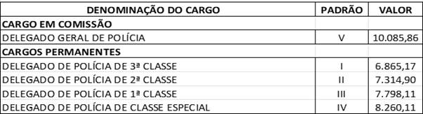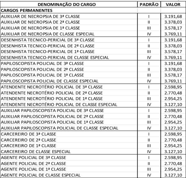 | DENOMINAÇÃO DO CARGO | PADRÃO | VALOR ATUAL |