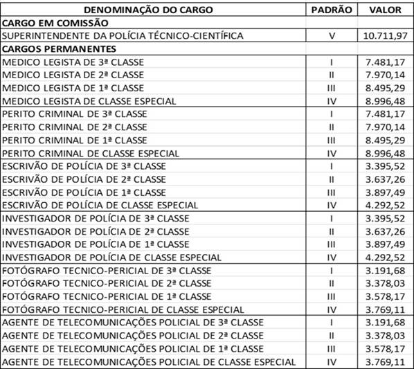 I - Anexo I, dos integrantes de carreira de Delegado de Polícia;