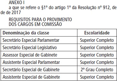 - O cargo "Agente de Segurança Parlamentar" passou a se denominar "Auxiliar Legislativo" pela Resolução n° 920, de 10/09/2019.