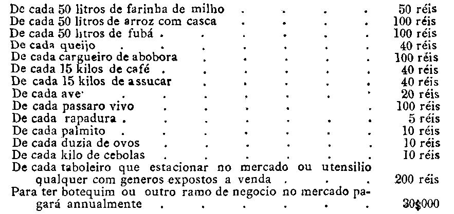 estradas do municipio, os generos sujeitos ao mercado, cujos donos