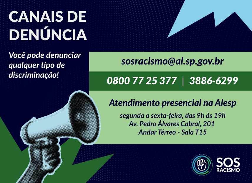 O SOS Racismo, serviço de combate à discriminação da Assembleia Legislativa do Estado de São Paulo, completou 20 anos de funcionamento. Instalado oficialmente em 29 de setembro de 2005, o serviço recebe e encaminha denúncias de vítimas de discriminação racial e outros tipos de preconceito. O objetivo é fazer com que elas sejam amparadas e seus casos sejam acolhidos pelo sistema de justiça.
